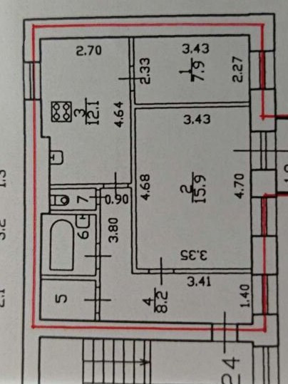Общая площадь 50.7 м2
