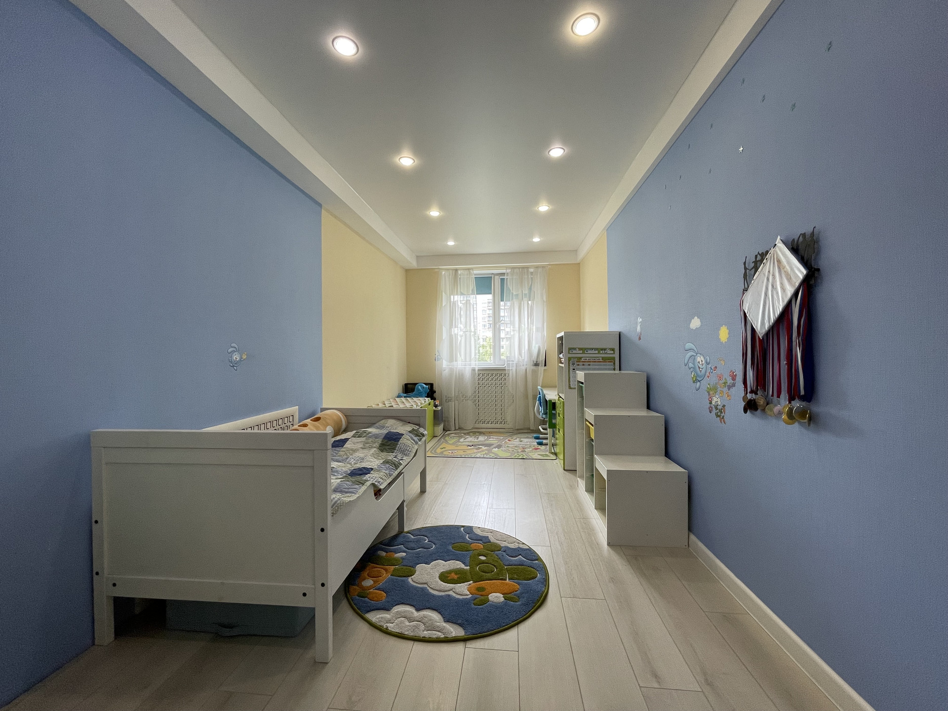 Двусторонняя квартира, расположенная на 3 этаже. Все окна выходят в тихий зеленый двор.