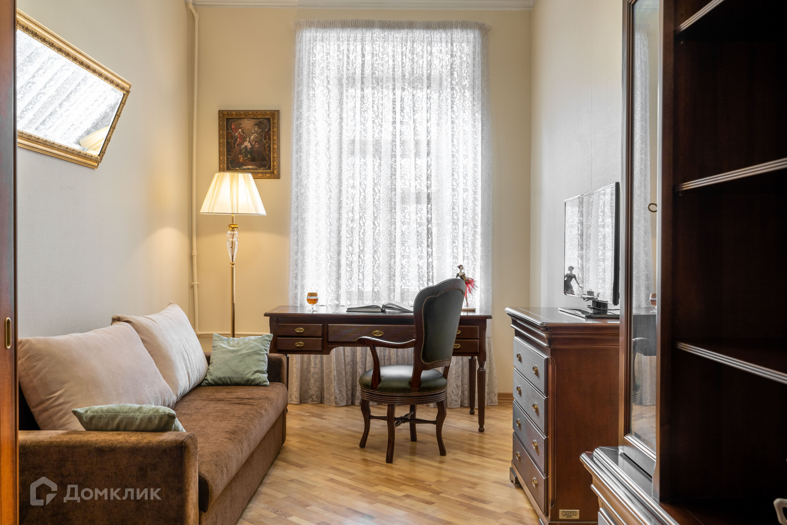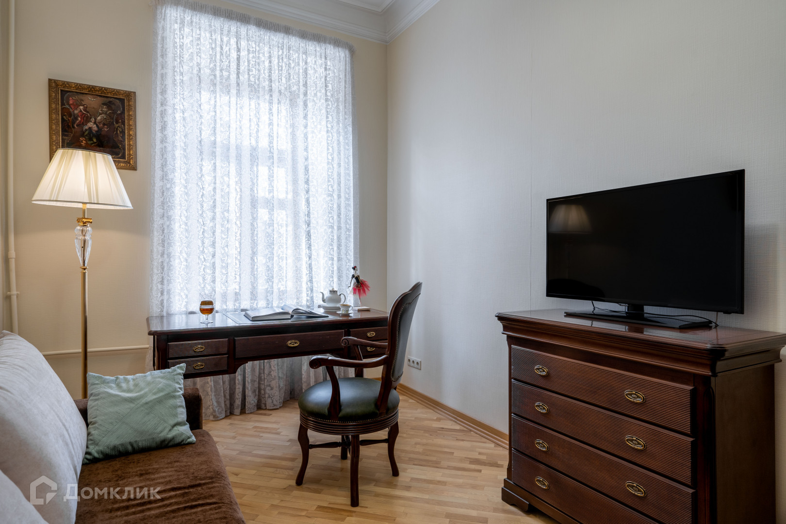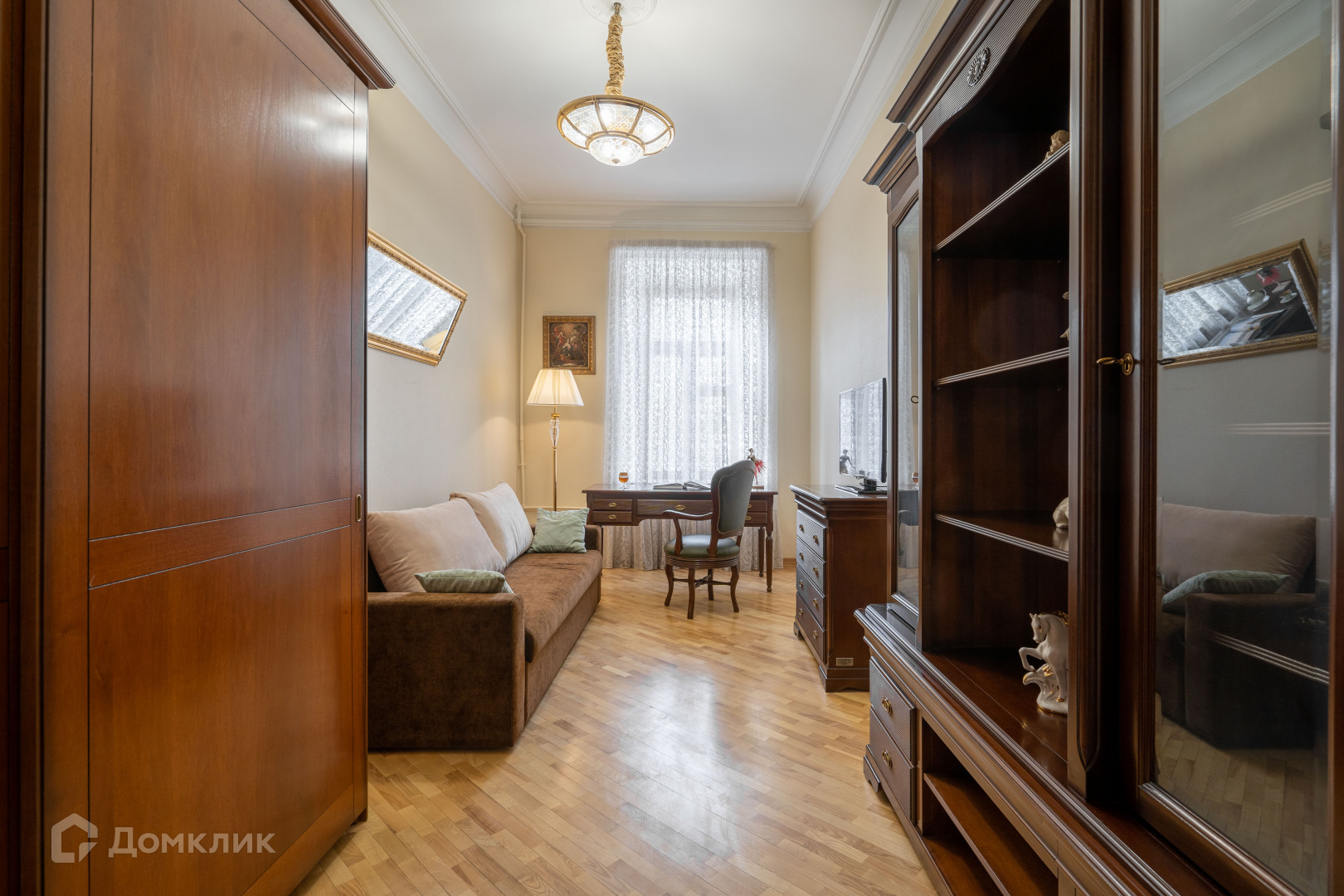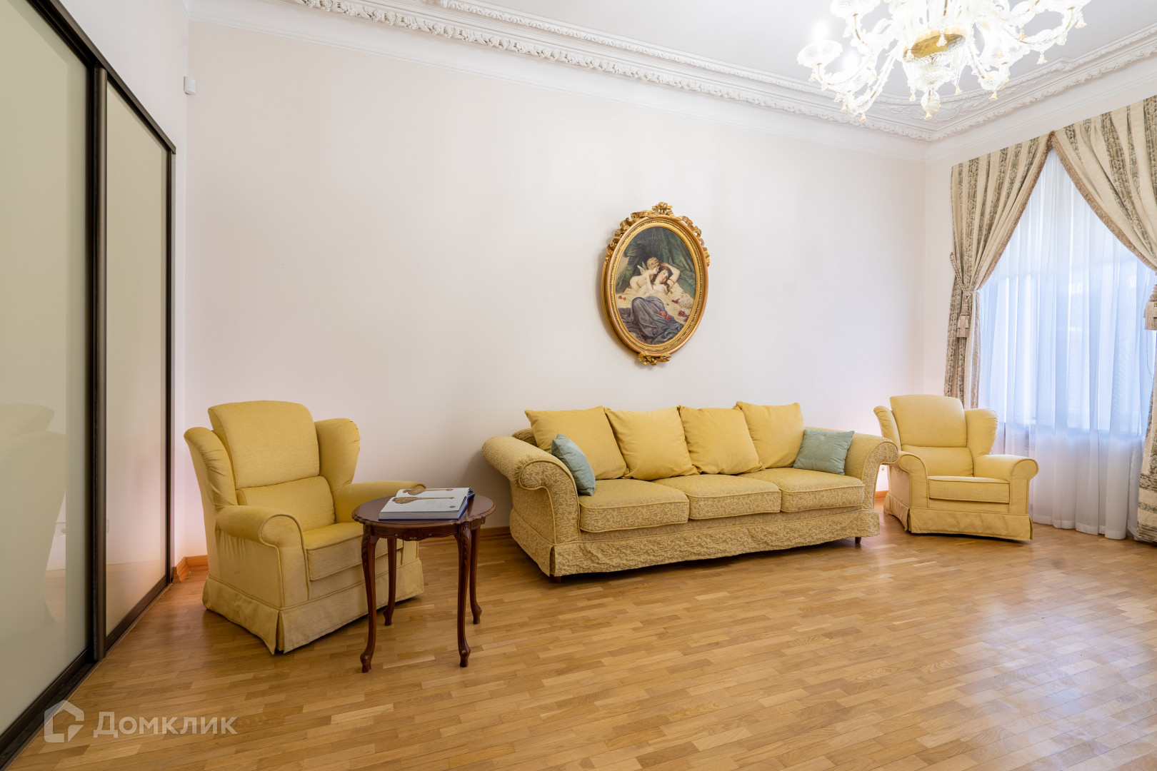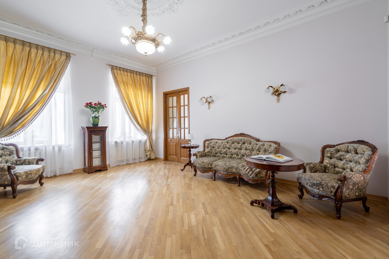 В квартире сделан дизайнерский ремонт в классическом стиле из высококачественных материалов, заменены все коммуникации, восстановлена изящная лепнина, паркет наполнение итальянской мебелью и техникой премиальных брендов подчеркивают ее индивидуальность.