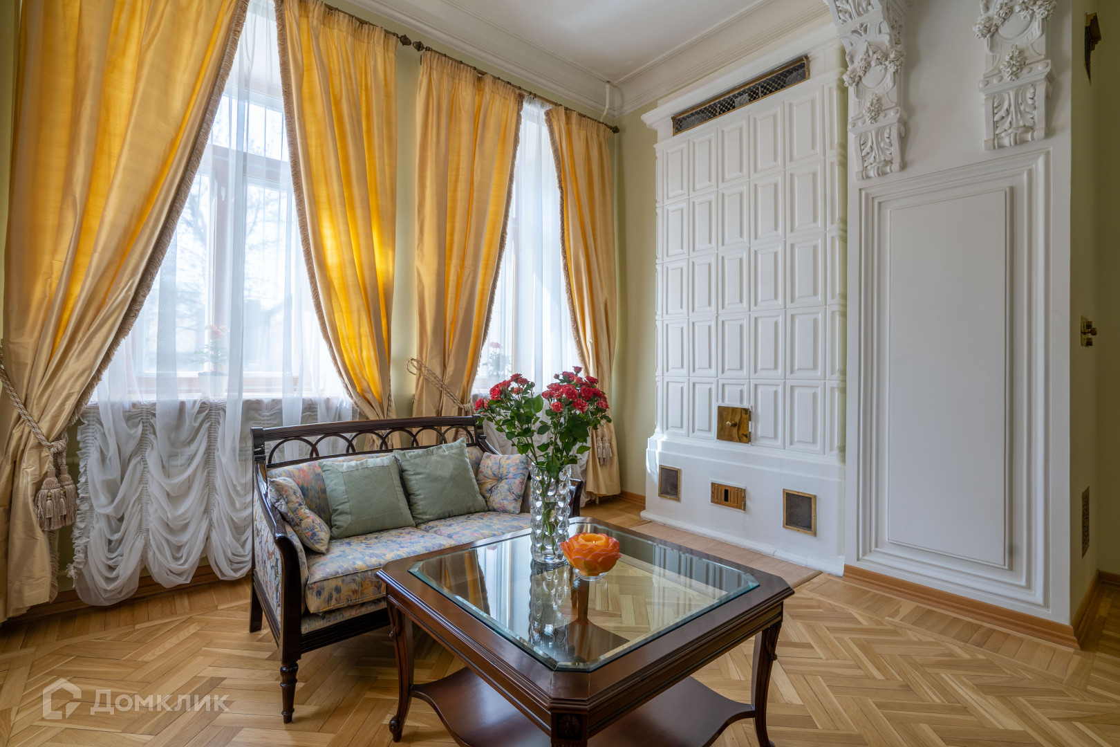 О Квартире: Двухсторонняя, изысканная, лучезарная, светлая, просторная, прекрасная, стильная пяти комнатная квартира, с классной планировкой. В квартире оригинальные печи в двух комнатах, украшенные лепниной. Дымоходы функционируют.