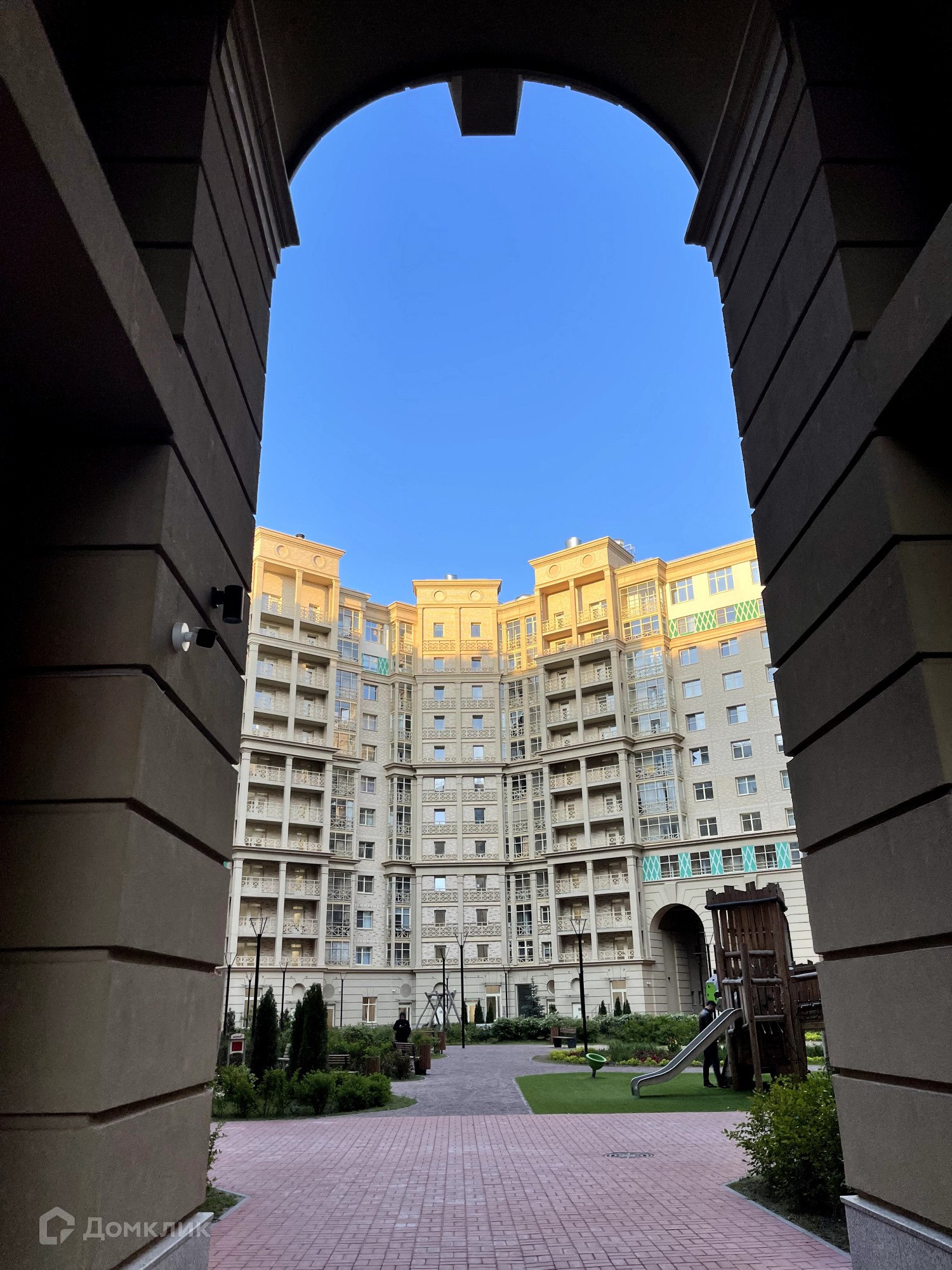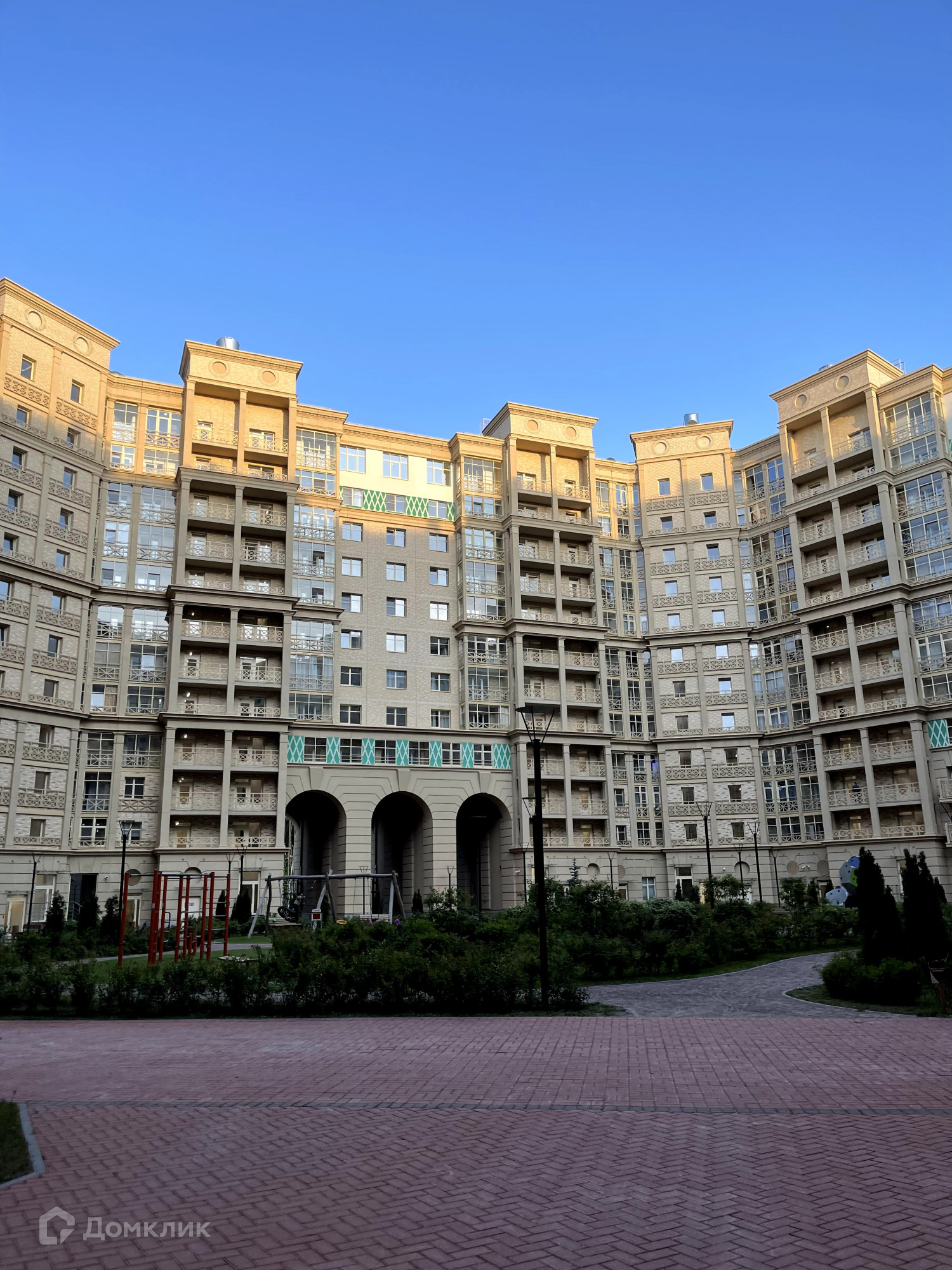 Архитектура дома в итальянском стиле, Подземный паркинг, свой детский сад на территории, в 2023 году откроют школу во дворе.