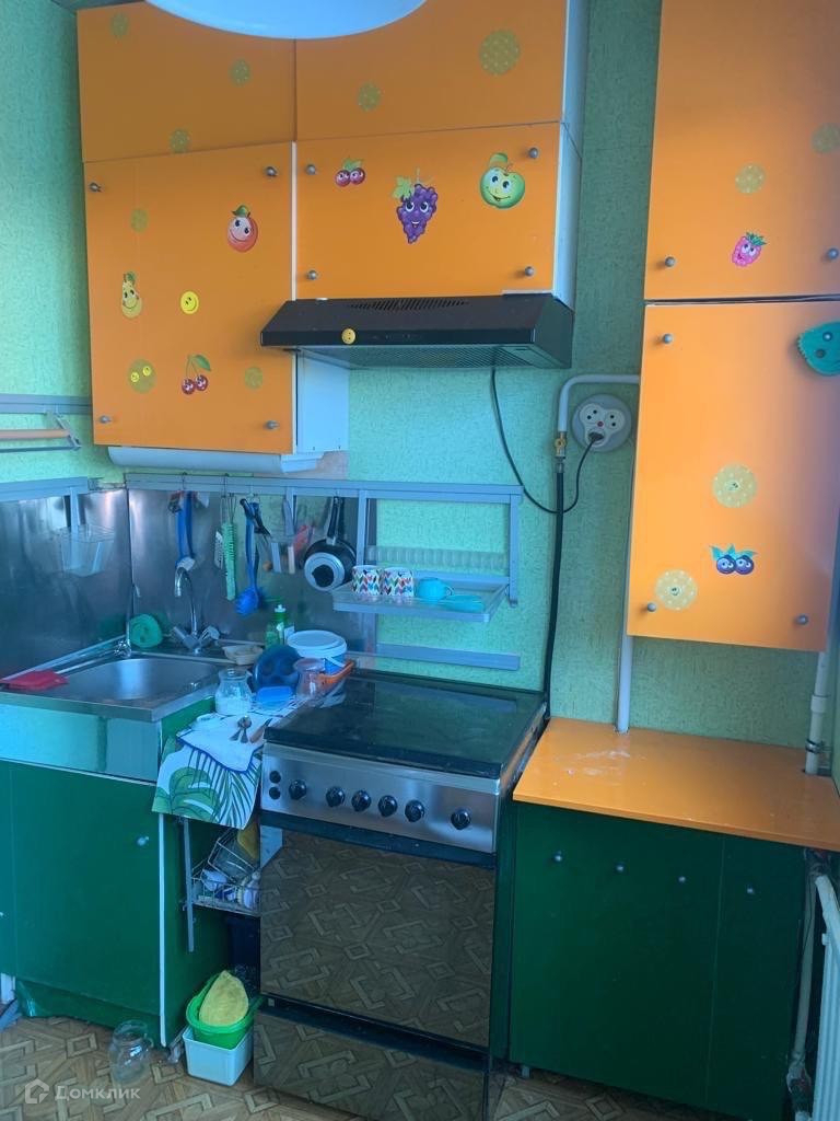 На кухне имеется кухонный гарнитур,плита,холодильник.Комнаты раздельные (11,9 и 15,1), кухня 6,5 метров.