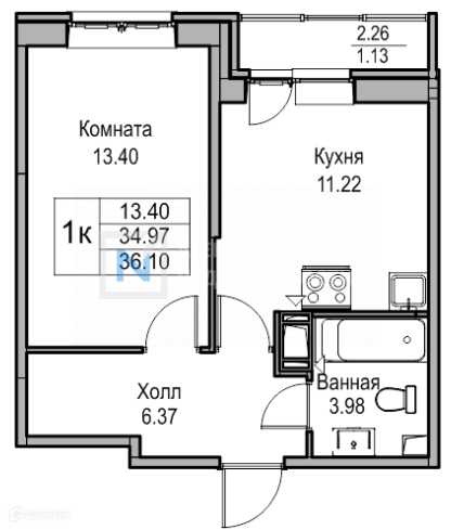 Общая площадь 35 м2