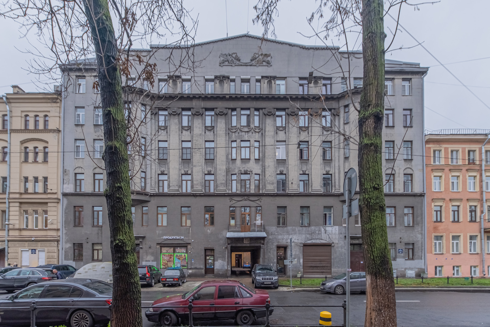 ⏺️ КАМЕННЫЙ Дом-Памятник 1917 г. п. с монументальным фасадом украшен барельефами химер, антаблементами и эркерами с элементами ионического ордера. Фронтон украшают - два крылатых льва – символы Санкт-Петербурга.