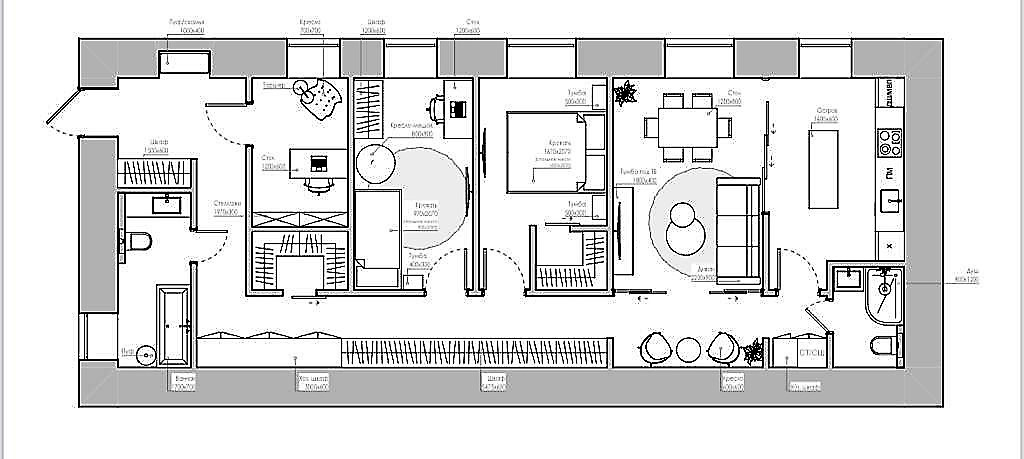 ⏺️ Потолки 3,3 метра; жилая площадь 45 м, кухня 15,5 м