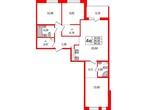 Общая площадь 91 м2