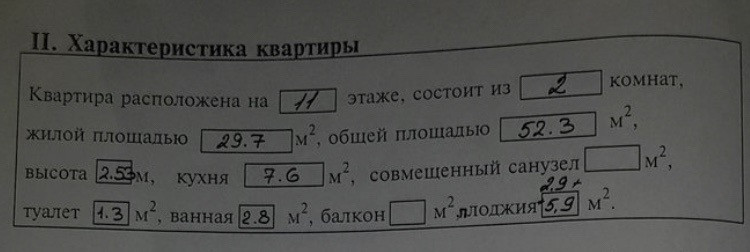 Общая площадь 52.3 м2