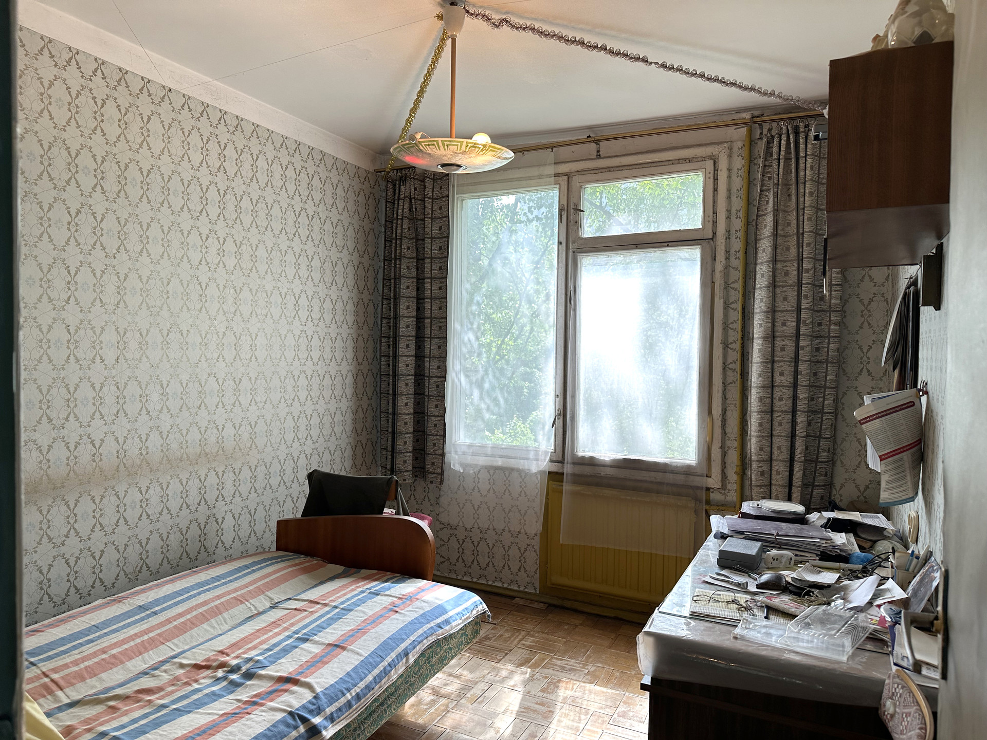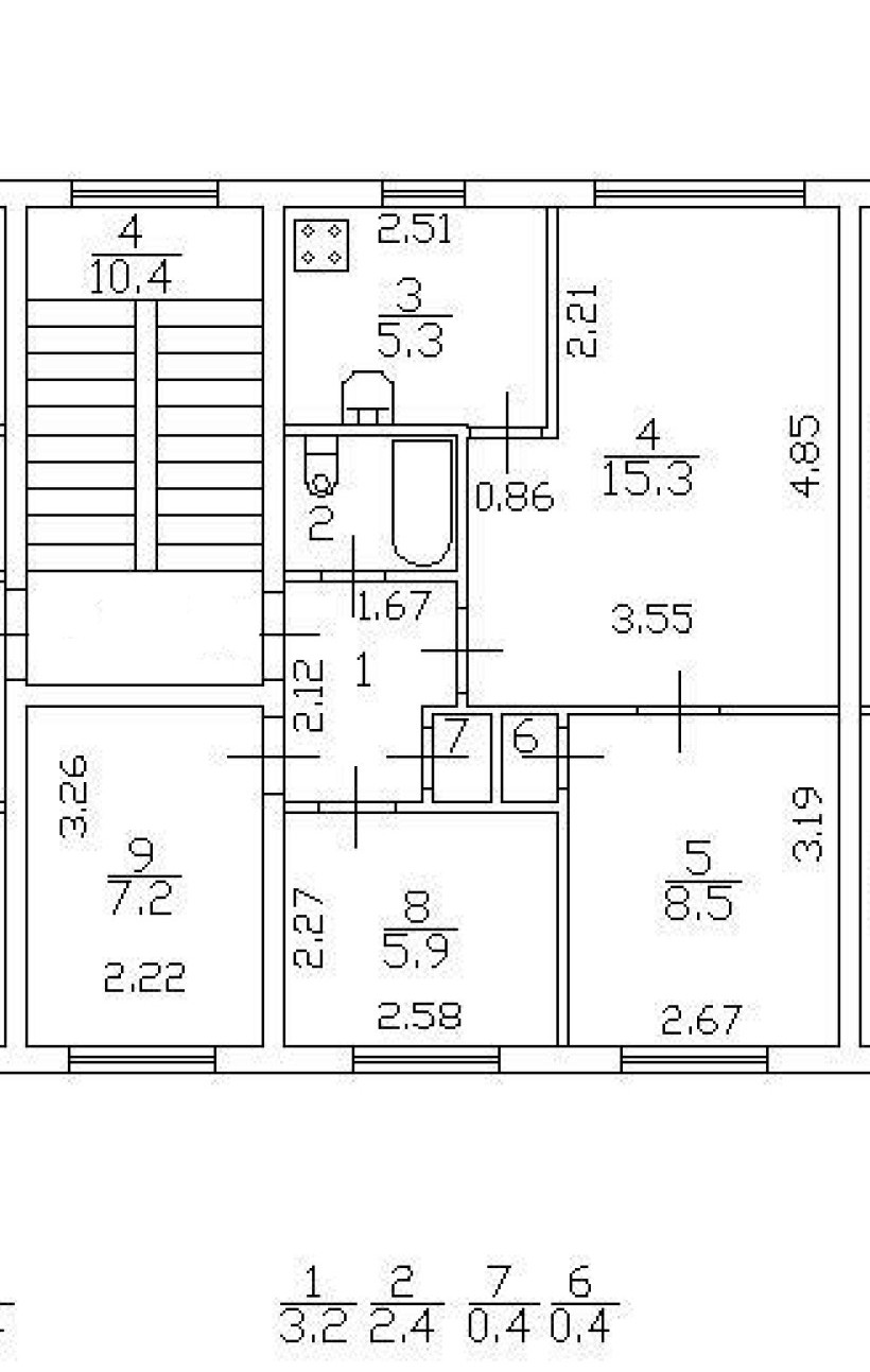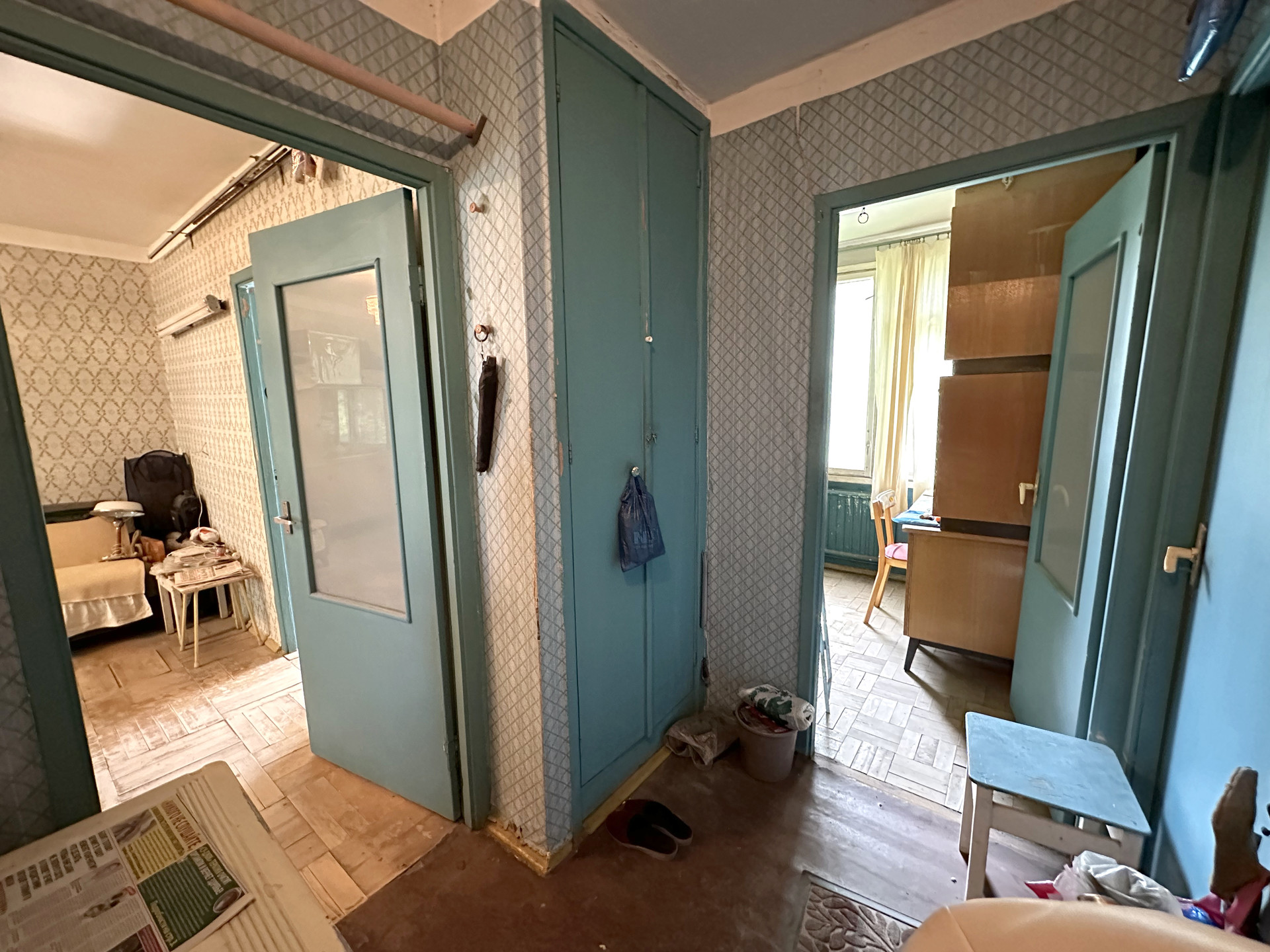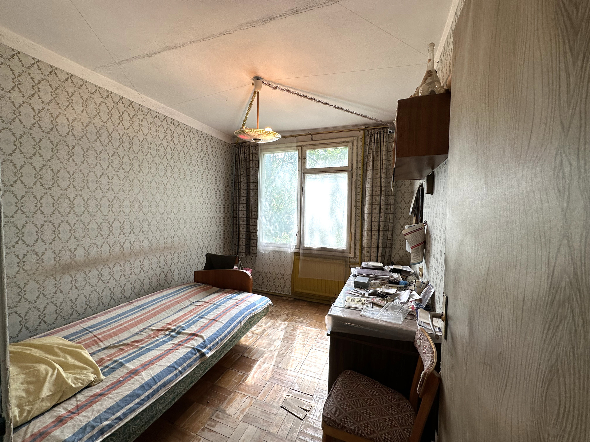 Четырёхкомнатная квартира 48,6 м2 (жилая 36,9 м2) на 3 этаже панельного дома 1968 года постройки. Комнаты 15,3 м2; 8,5 м2; 5,9 м2 и 7,2 м2; кухня 5,3, коридор 3,2 м2; санузел совмещенный 2,4 м2. Плита газовая.