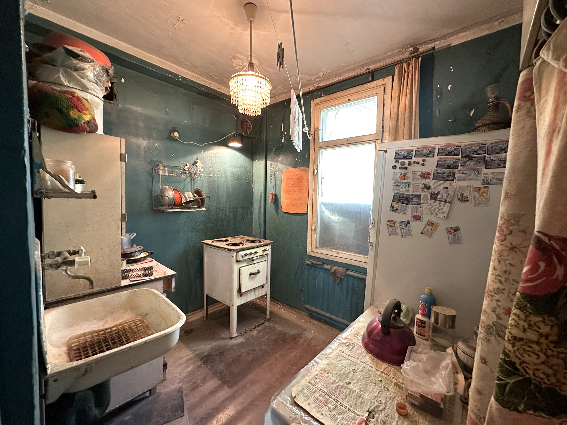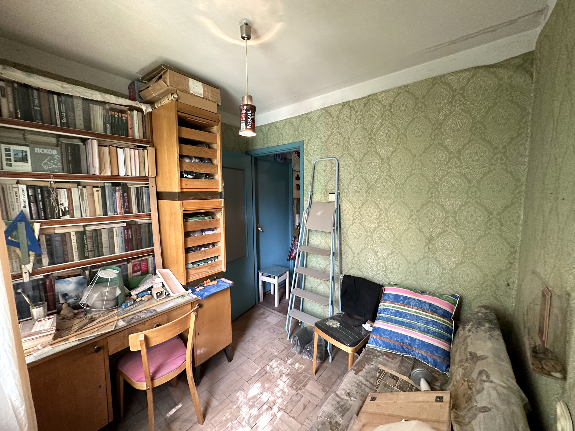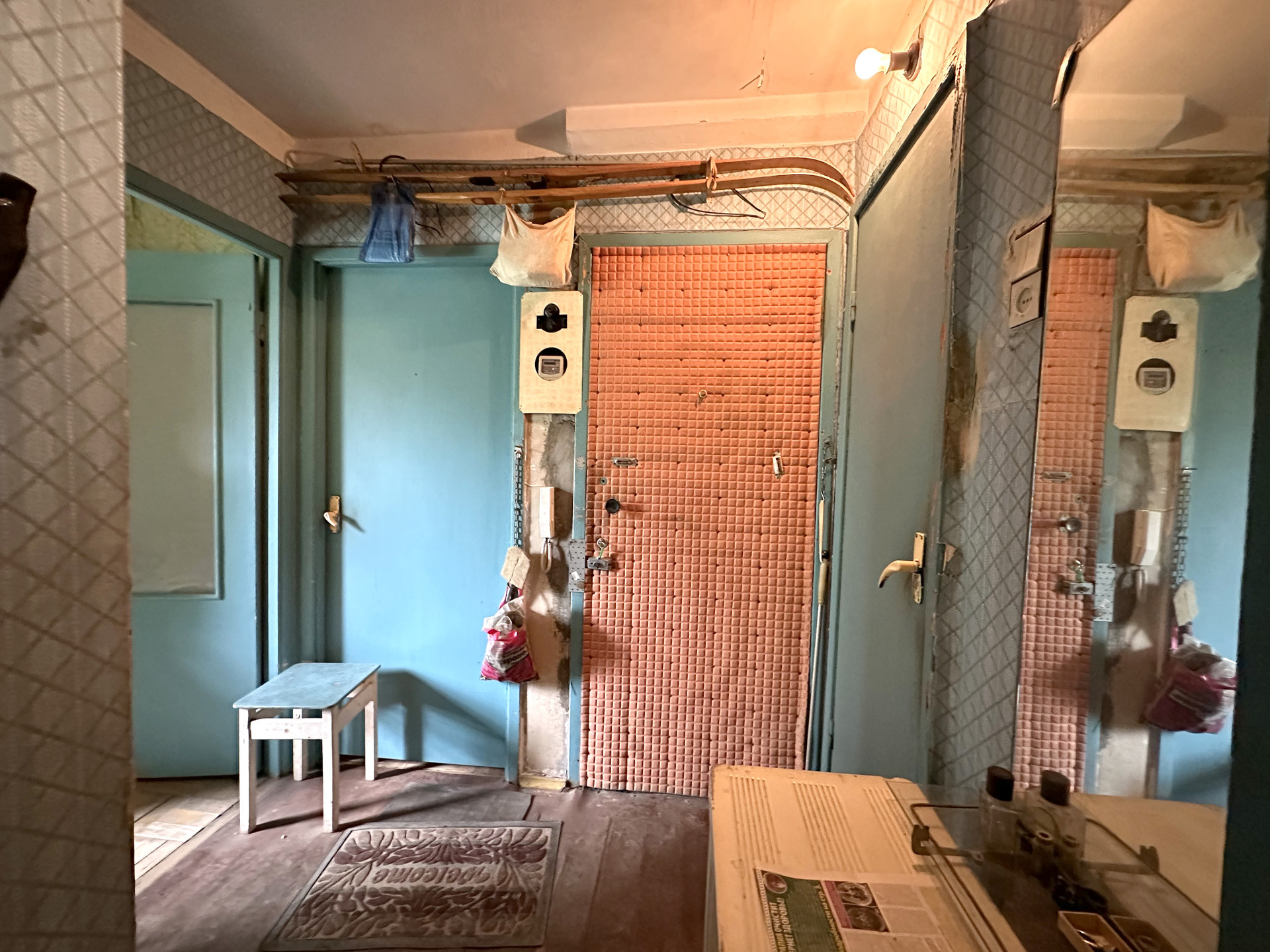 Четырёхкомнатная квартира 48,6 м2 (жилая 36,9 м2) на 3 этаже панельного дома 1968 года постройки. Комнаты 15,3 м2; 8,5 м2; 5,9 м2 и 7,2 м2; кухня 5,3, коридор 3,2 м2; санузел совмещенный 2,4 м2. Плита газовая.