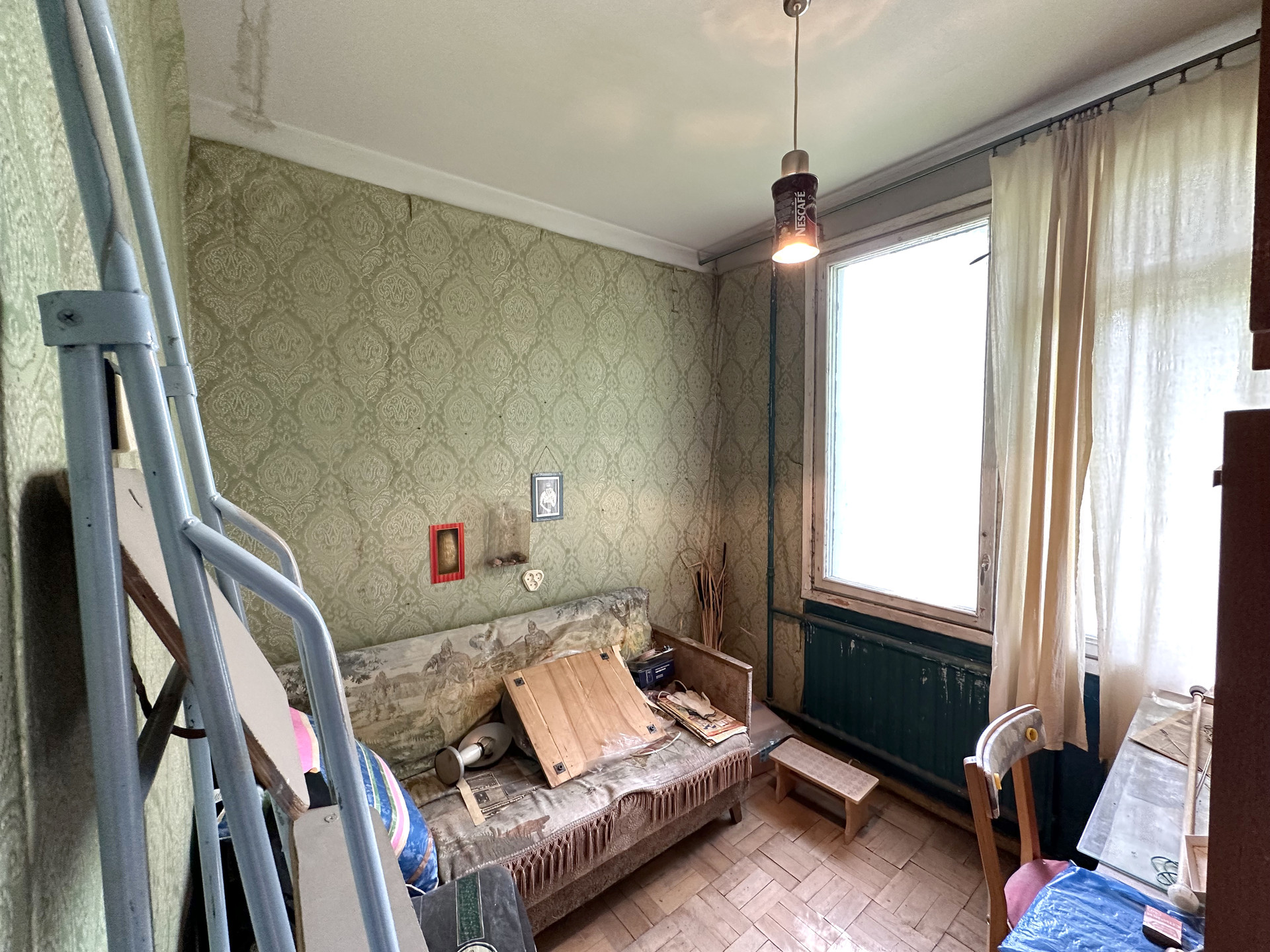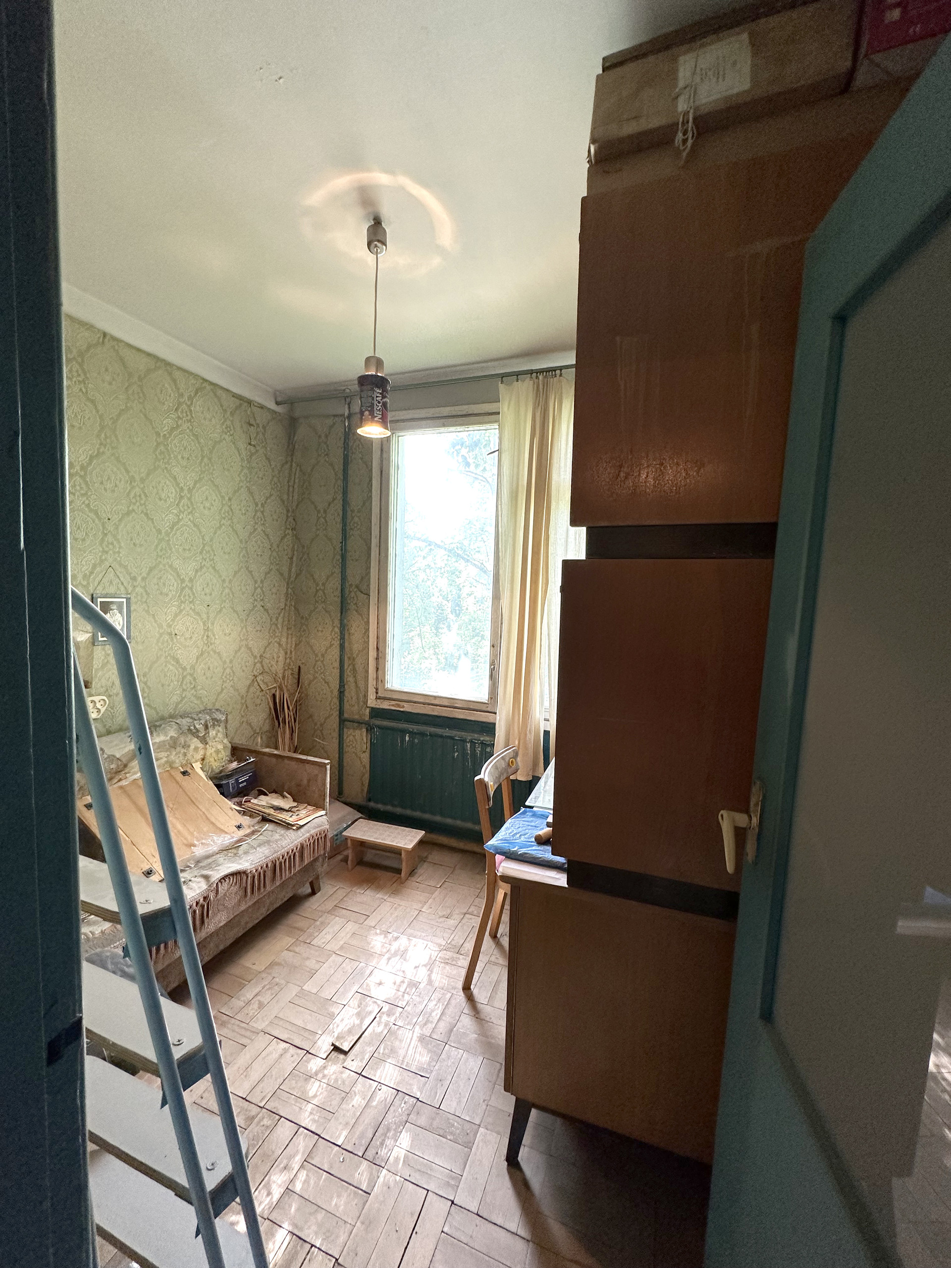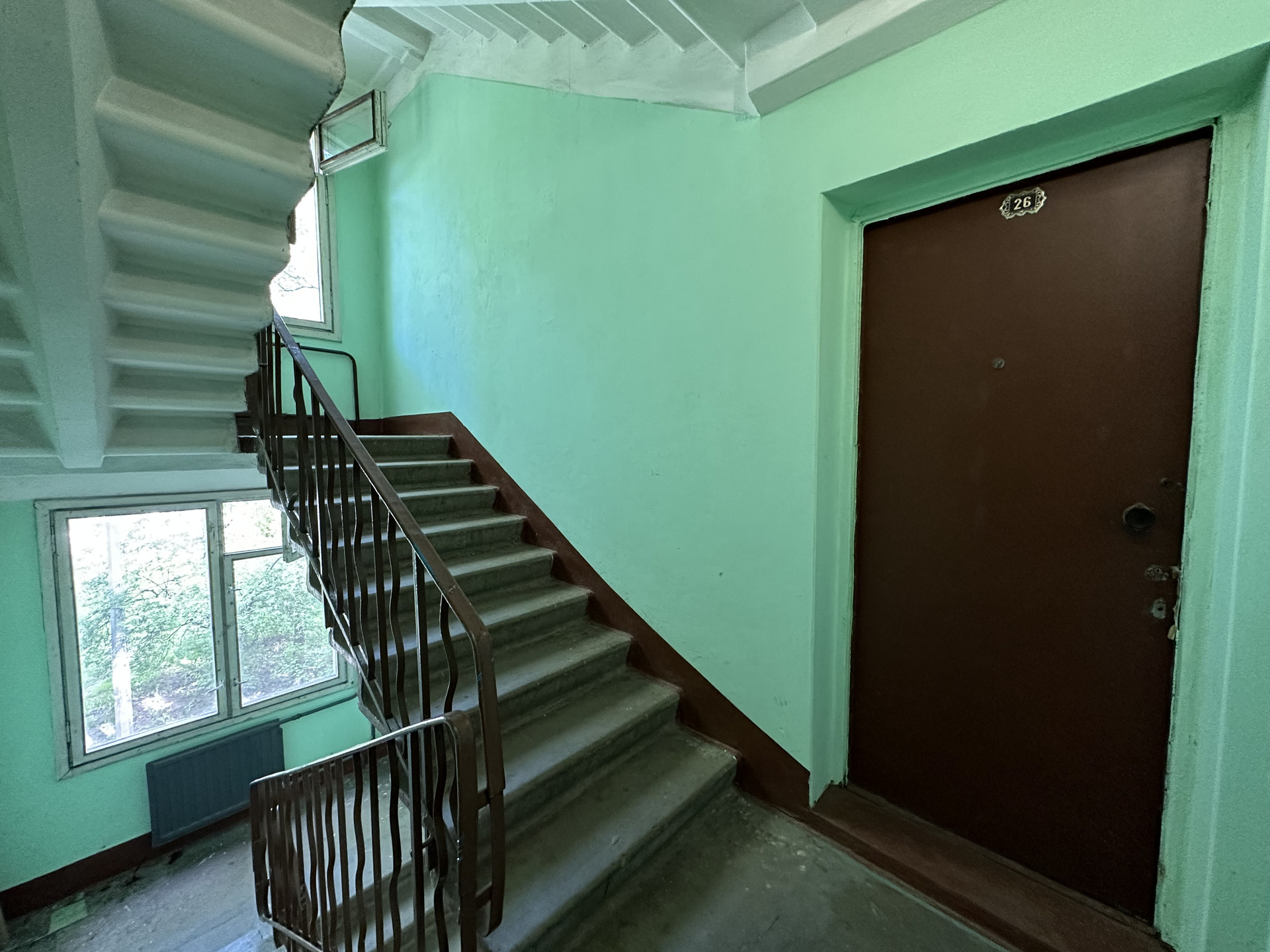 Окна выходят на две стороны (все солнечные) в тихий зелёный двор. На этаже две квартиры, хорошие соседи. Мусоропровода в доме нет, в парадной чисто.