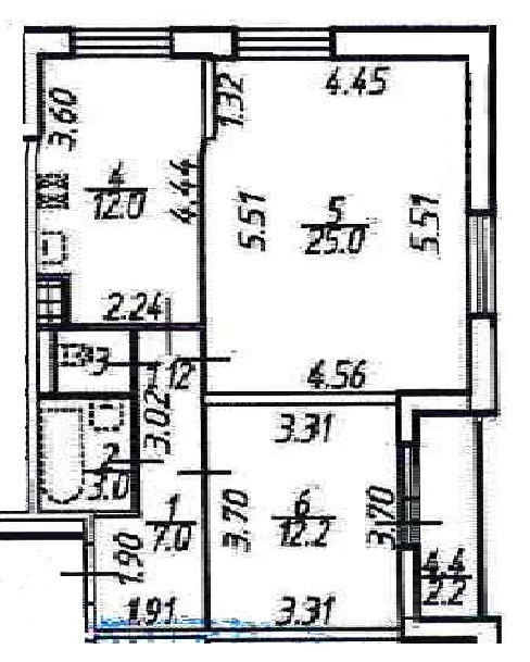 - две изолированные комнаты 25 + 12 с остеклённой лоджией 4,4 м2