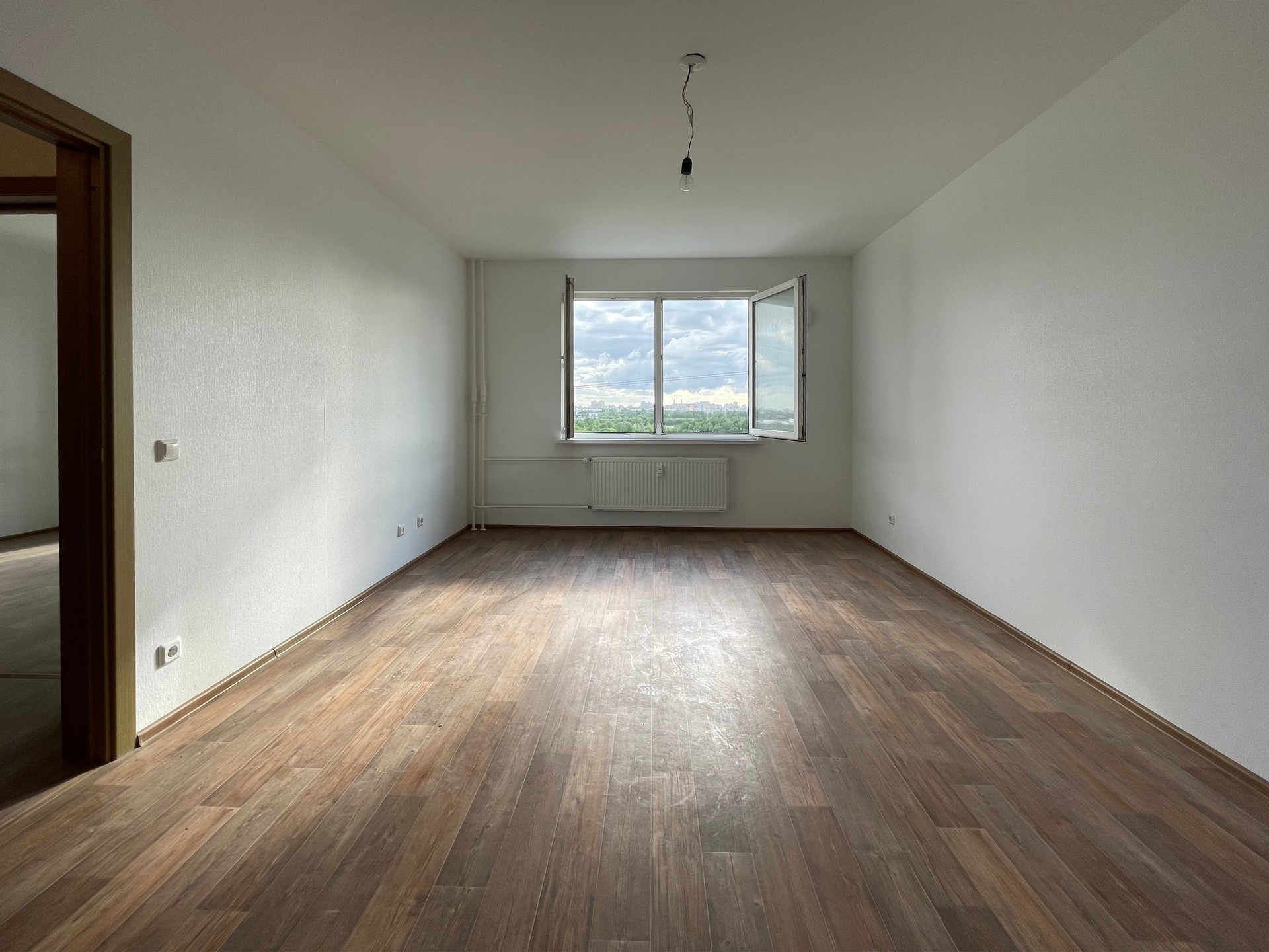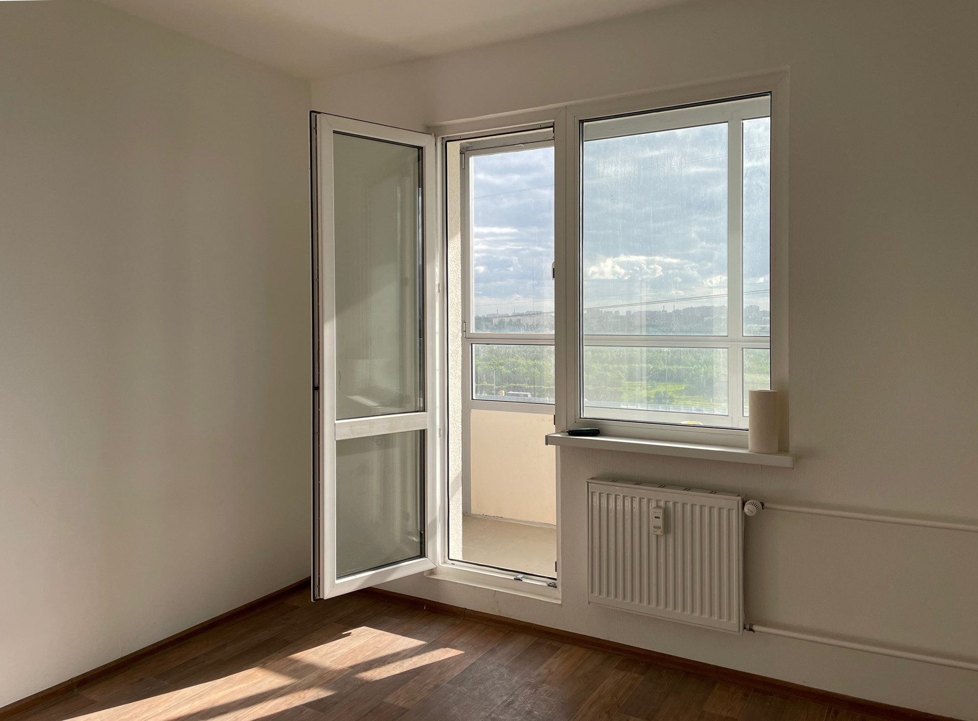 В прямой продаже просторная 1-комнатная квартира в доме 2017 г. п. - ЖК Новая Охта. Классическая планировка - квадратная кухня 9,3м2 с выходом на большой балкон, в прихожей предусмотрено место под шкаф, в санузле полноценная ванна и есть место под стиральную машинку, в комнате удобная ниша под встроенный шкаф или гардеробную. Окна на юго-запад, из окон открывается красивая панорама на город и Муринский ручей. Отделка от застройщика, дополнительно сделана отделка пола кафелем на балконе. В квартире с момента постройки никто не жил, отделка без следов износа.