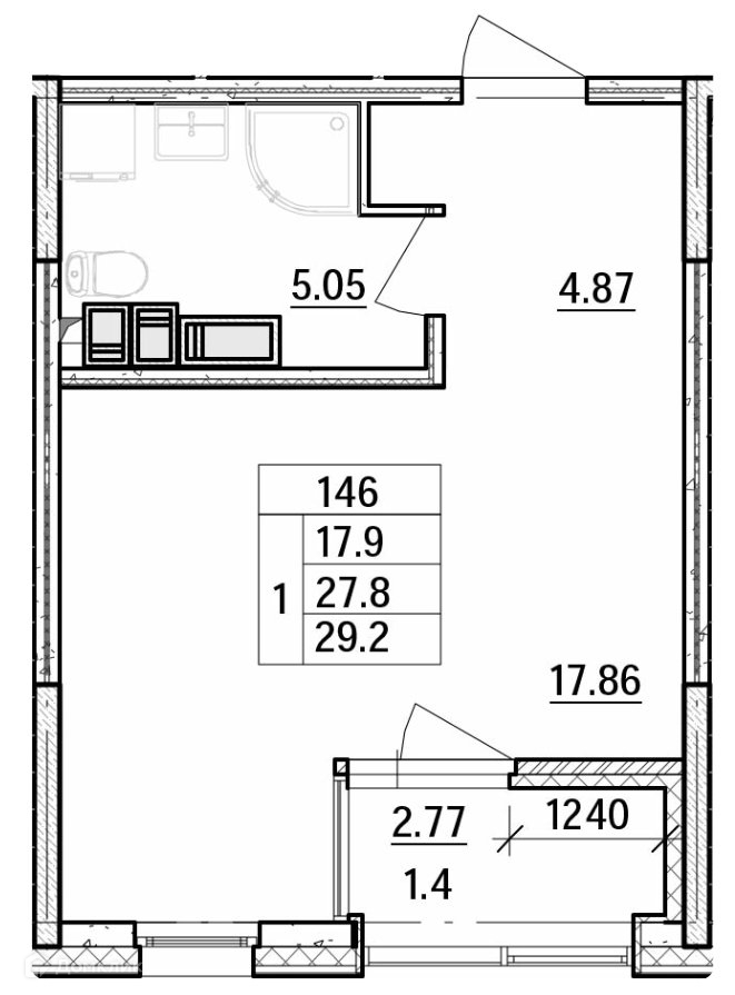 Правильная форма квартиры-студии с просторной лоджией