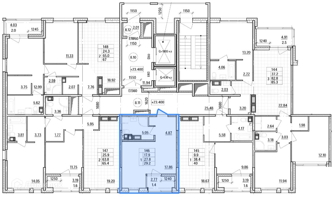 Общая площадь 29.2 м2