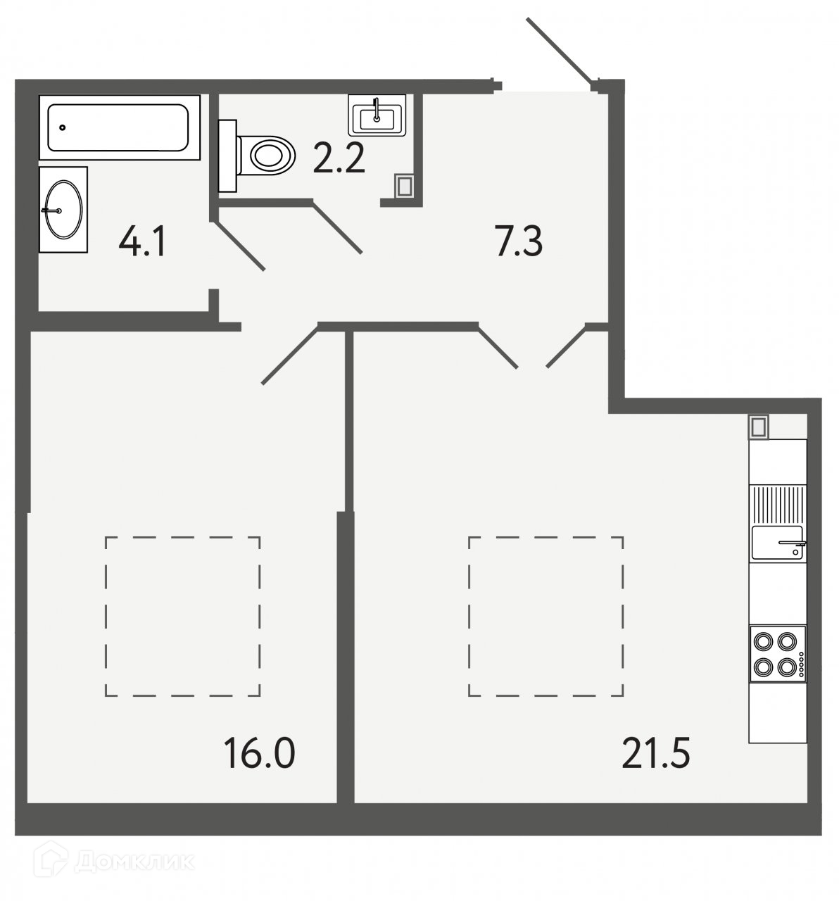 Жилая площадь 16.1 м2