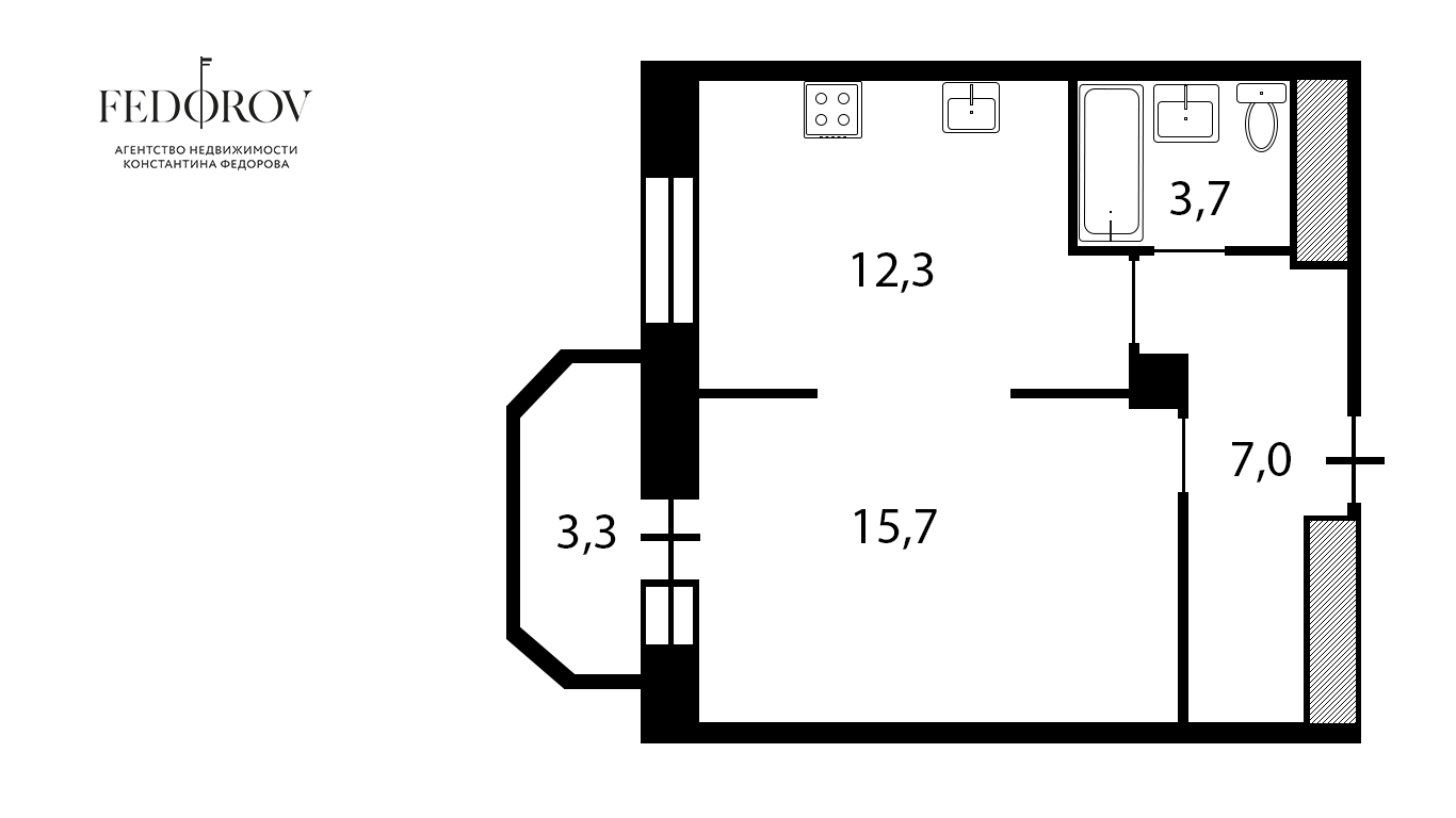 - Квартира с предчистовой отделкой: можно сделать все под себя, не переплачивая за ремонт от застройщика. Общая площадь квартиры – 38,7 м2. Просторная кухня – 12,3 м2. Большой коридор (7,0 м2) с нишей под гардеробную. Большие панорамные окна. Совмещенный санузел. Комната (15,7 м2) с выходом на балкон.