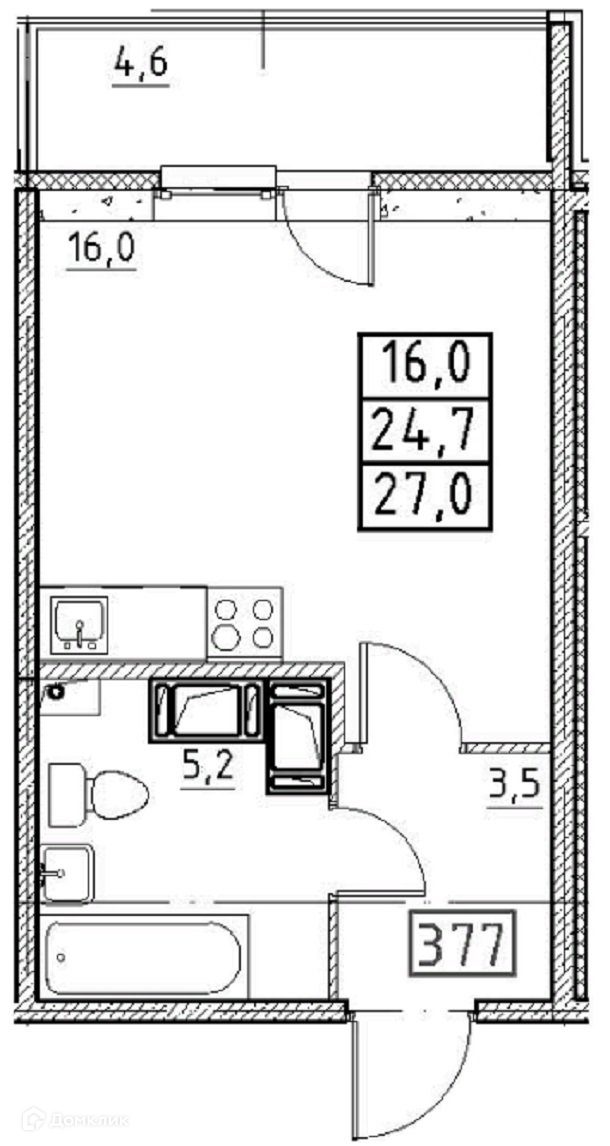 Общая площадь 27 м2