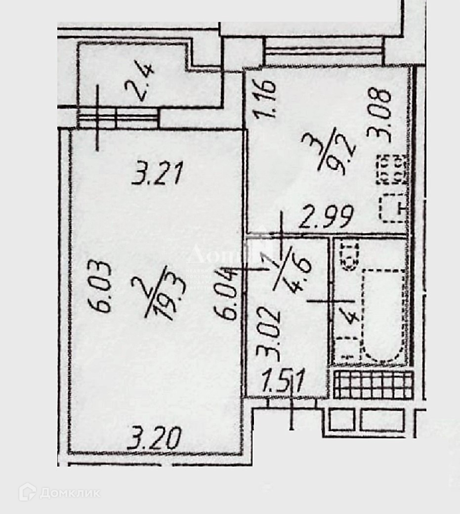 Жилая площадь 19.3 м2
