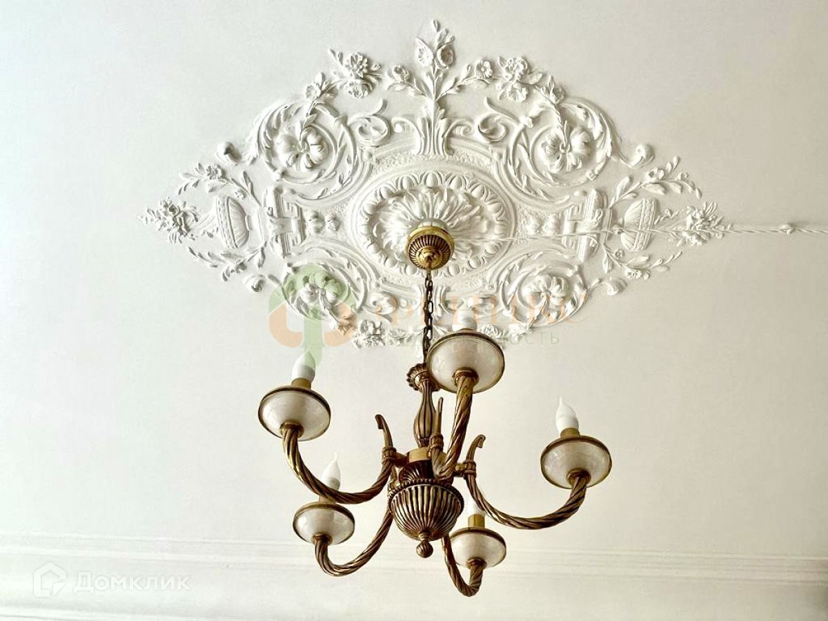 Перекрытия в доме смешанные. Квартира просторная, с грамотной планировкой: отсутствие типичной для старого фонда гребенки с длинным коридором - коридор плавно переходит в гостиную. На кухне вместительная кладовая-постирочная. В квартире сохранены лепнина, оригинальная печь и родные двери.