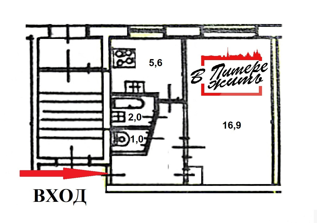 1-комнатная квартира, 30.9 м2, этаж 1 / 5, на продажу в Санкт-Петербурге, улица Ленсовета, 76