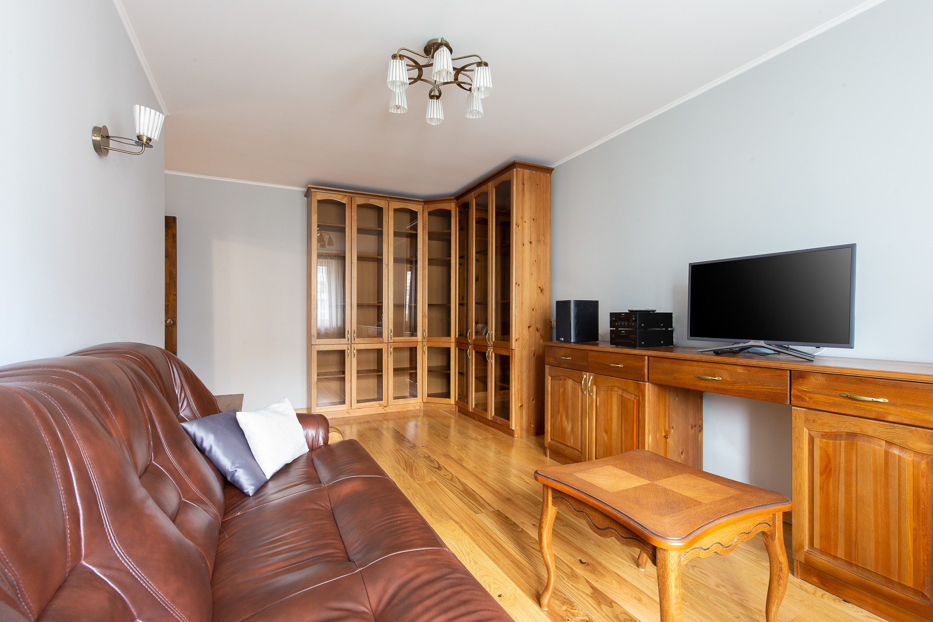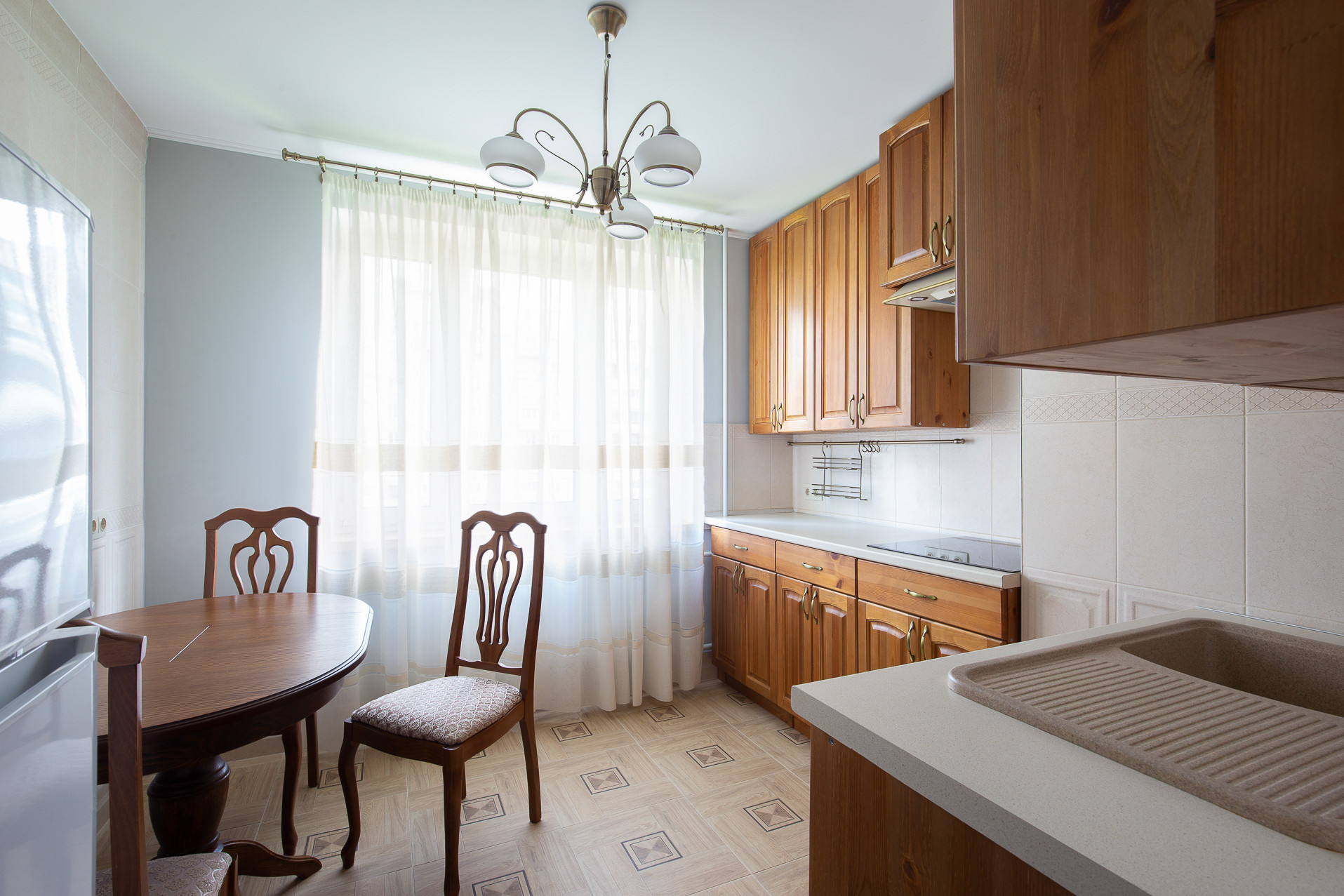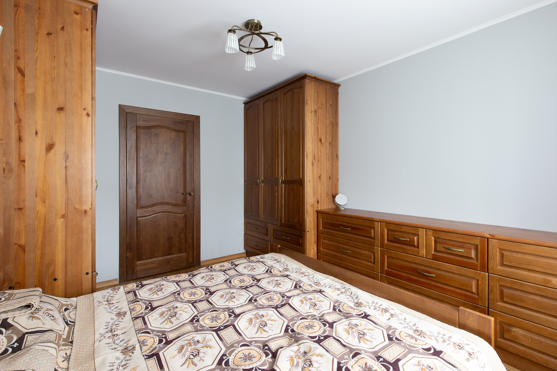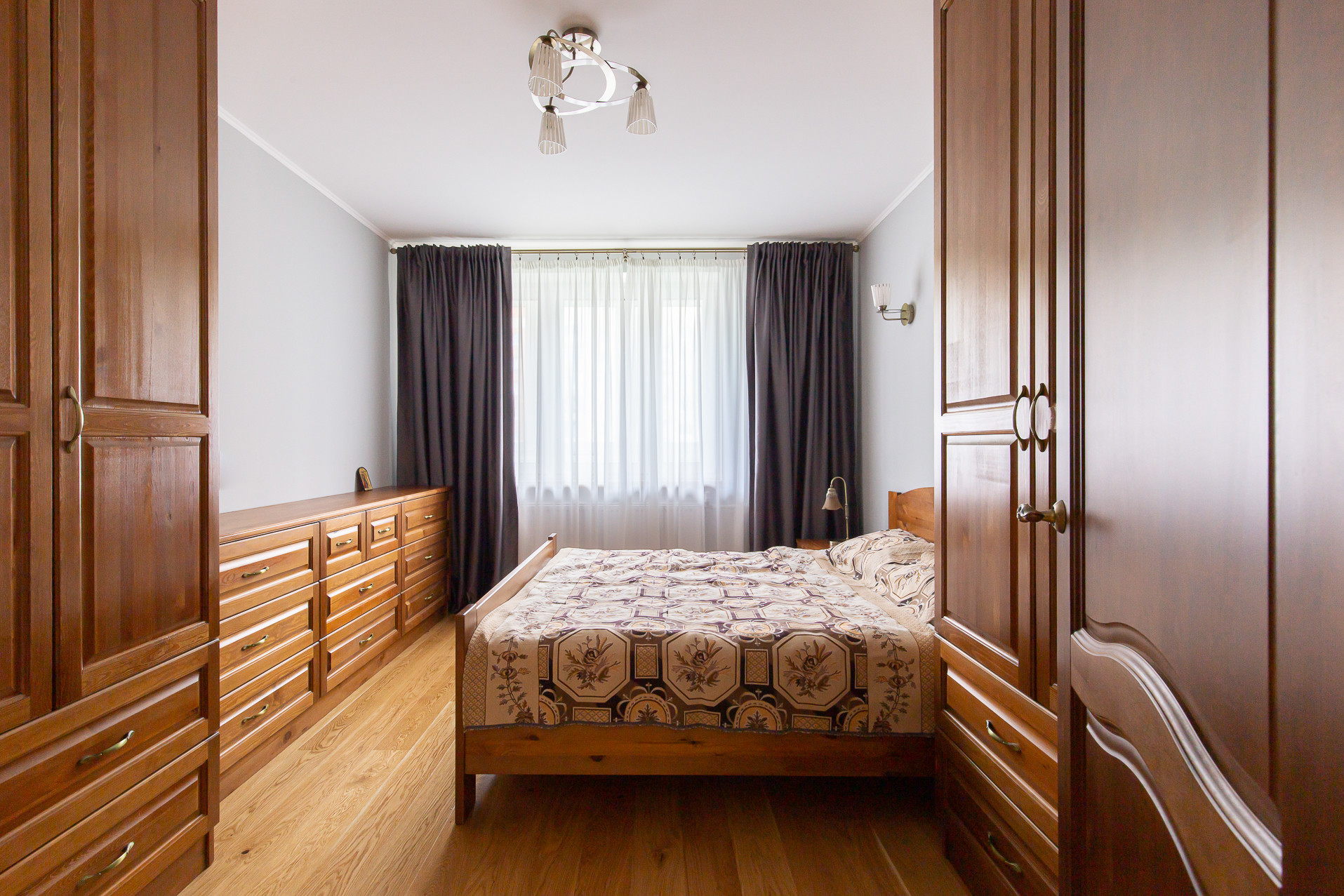 В стоимость входит  кухонный гарнитур, выполненный из массива дерева,  со встроенной техникой и вся мебель в комнатах, сделанная так же из массива, специально для этой квартиры.