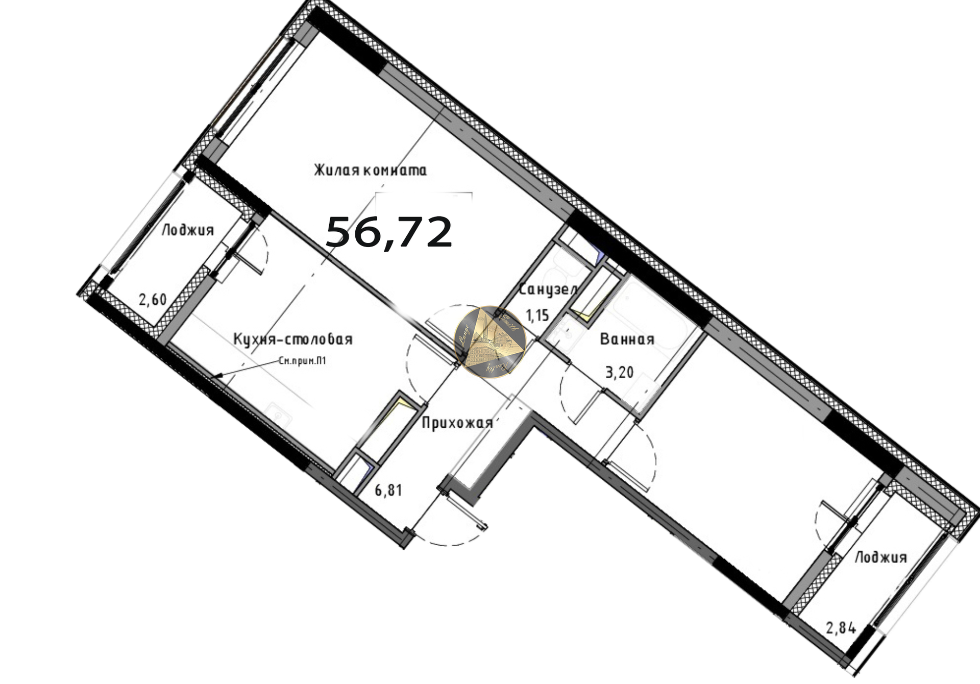Общая площадь 56.72 м2