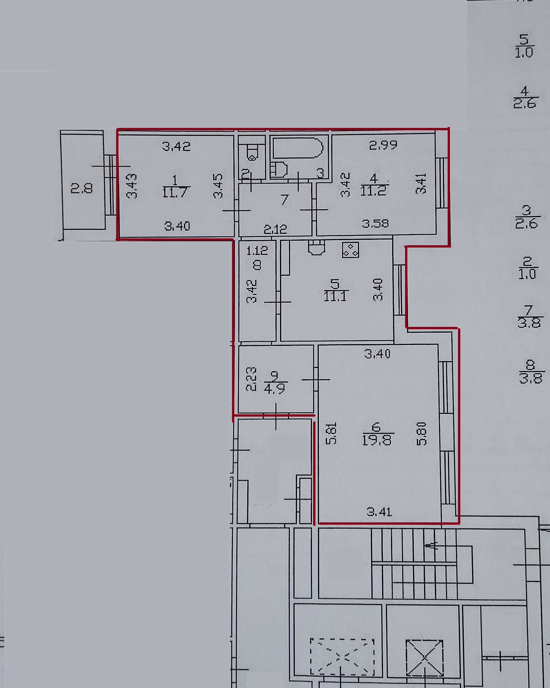 Комнаты 19,8; 11,7 (+лоджия) и 11,2 кв.м. изолированные, правильной формы.