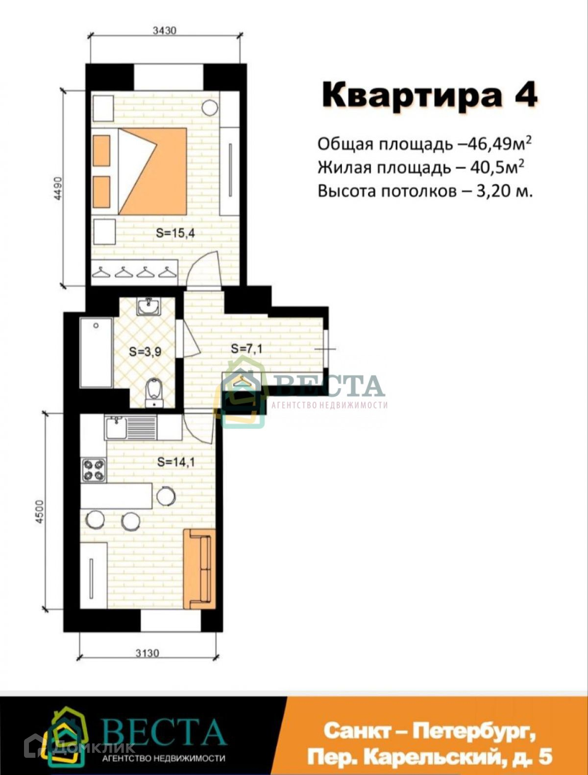 Расположена на 4-м этаже, двухсторонняя, теплая и светлая, с удобной планировкой, с отдельной спальной комнатой, изолированной от кухни-гостиной. Окна на восток и запад.