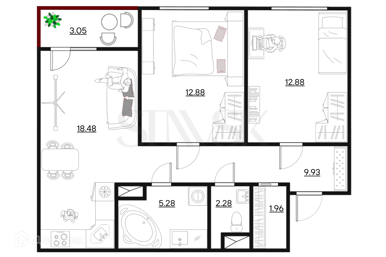Общая площадь 60.12 м2