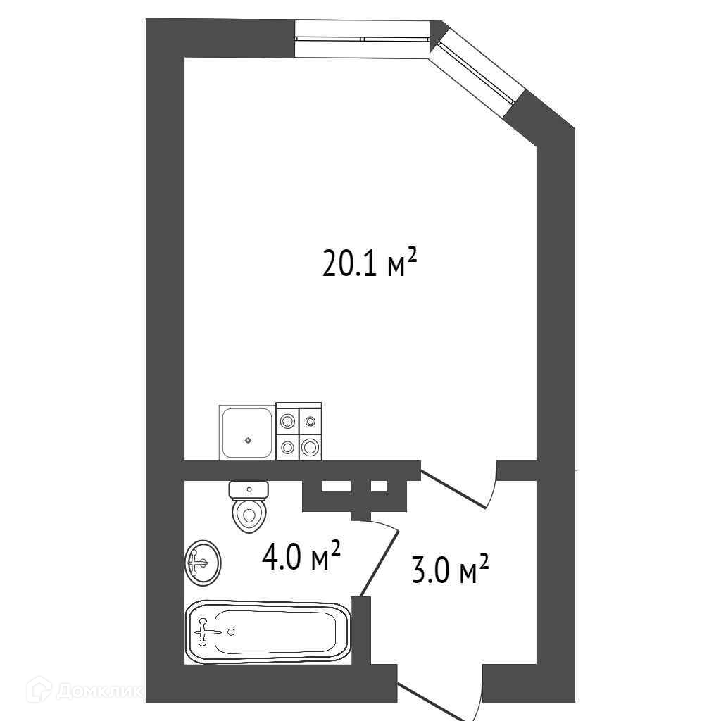 Общая площадь 28.1 м2