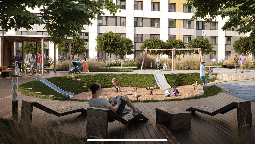 Тематические площадки сделают двор любимым местом отдыха для каждого. Пока ребенок исследует веревочный парк, площадки-амфитеатры, игровые комплексы и шалаши для пряток, родители смогут провести время за компьютером в беседках с wi-fi или отдохнуть в зоне chill-out, расположенной рядом с детской игровой площадкой. Также для маленьких жителей предусмотрен детский игровой клуб, который отроется во дворе одного из корпусов