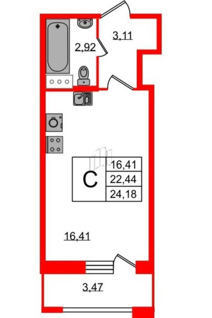 Общая площадь 24 м2