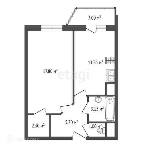 Общая площадь 41.8 м2