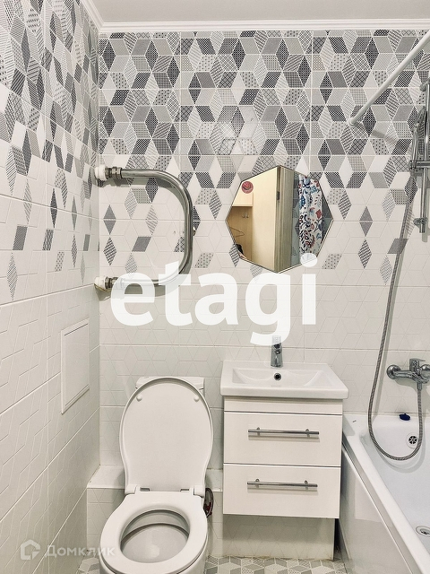 Сделан качественный ремонт от застройщика. Квартира продается без мебели, только с кухней. Санузел совмещенный, установленная ванная. Сама квартира находится в блоке где меньше всего квартир.