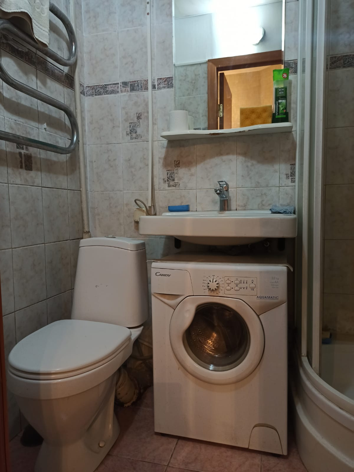 Квартира на комфортном 3 этаже. Состояние самой квартиры позволит заехать и жить,а в дальнейшем при желании выполнить ремонт при необходимости. На кухне установлены стеклопакеты. Напольное покрытие кухня линолеум,комната ламинат, санузел плитка. В квартире готовы оставить всю мебель, стиральную машину.