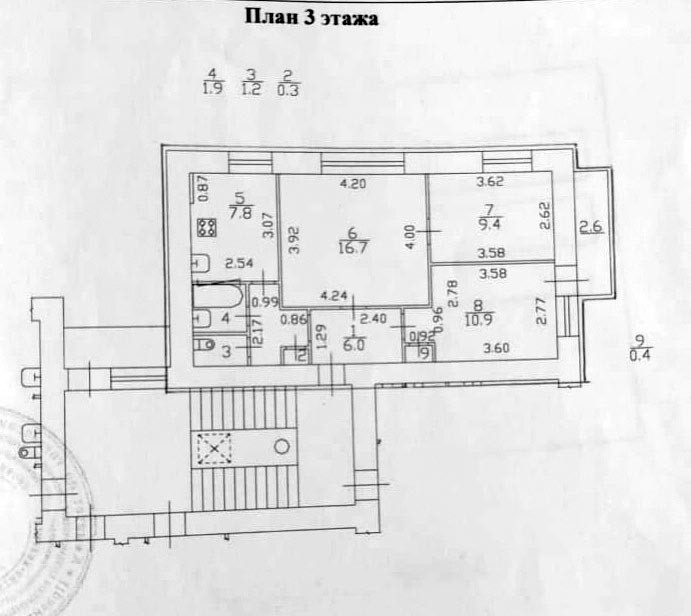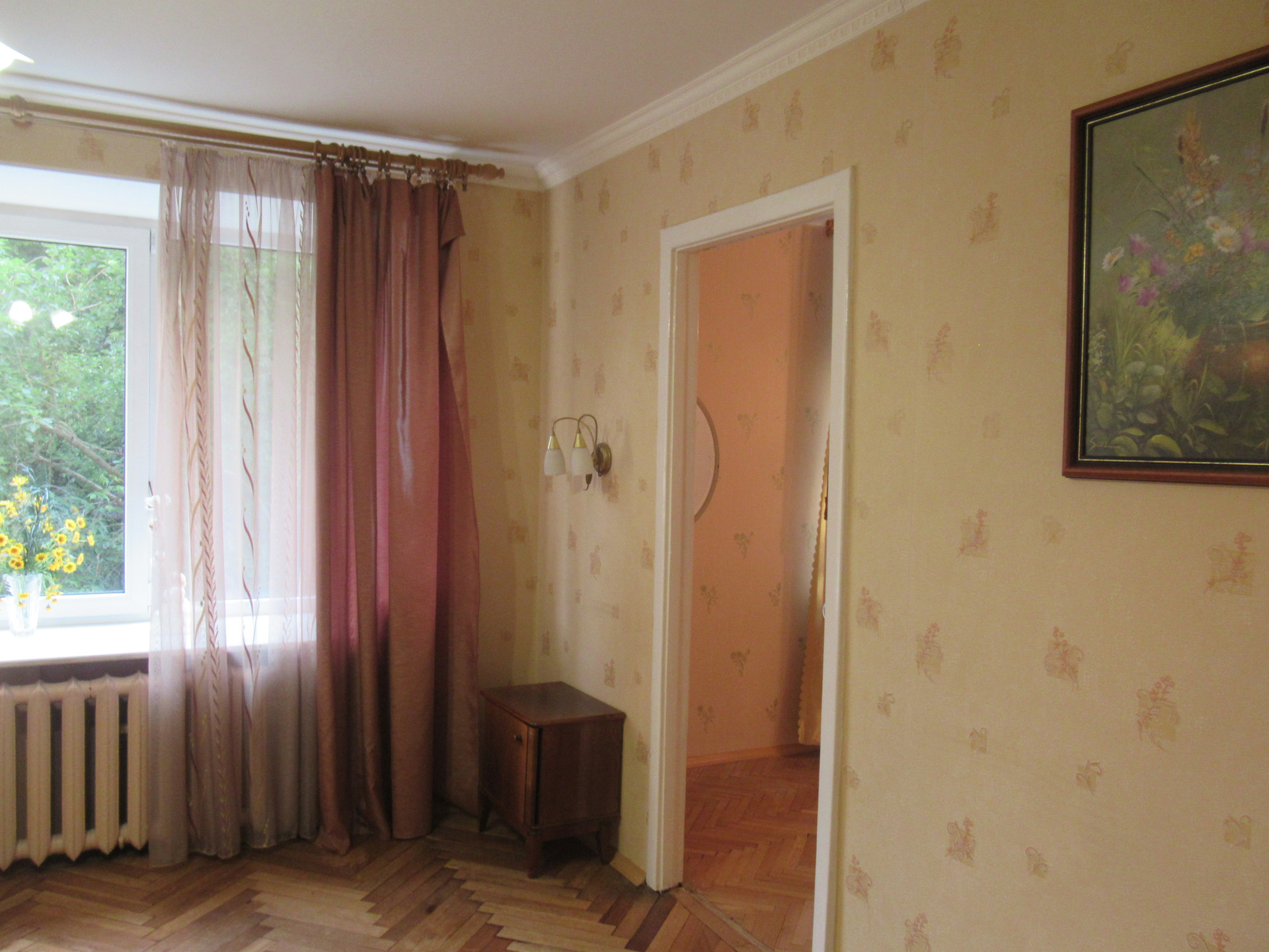 Продается трехкомнатная квартира в кирпичном  доме ЖСК. Квартира светлая, теплая, уютная. Расположена на третьем этаже девятиэтажного дома, подъезд чистый, две квартиры на этаже. В квартире установлены стеклопакеты, широкие подоконники, красивый вид из окон в тихий зеленый двор. Гостиная 16,7 м2, смежная с комнатой 9,4 м2, комната 10,9 м2 — изолированная с застекленным балконом 2,6 м2. Полы в комнатах паркетные. Кухня площадью 7,8 м2 хорошей формы, плита газовая, чистая, вытяжка, пол  - линолеум. Трубы в квартере заменены, установлен счетчик на воду. Газовая колонка исправно работает.