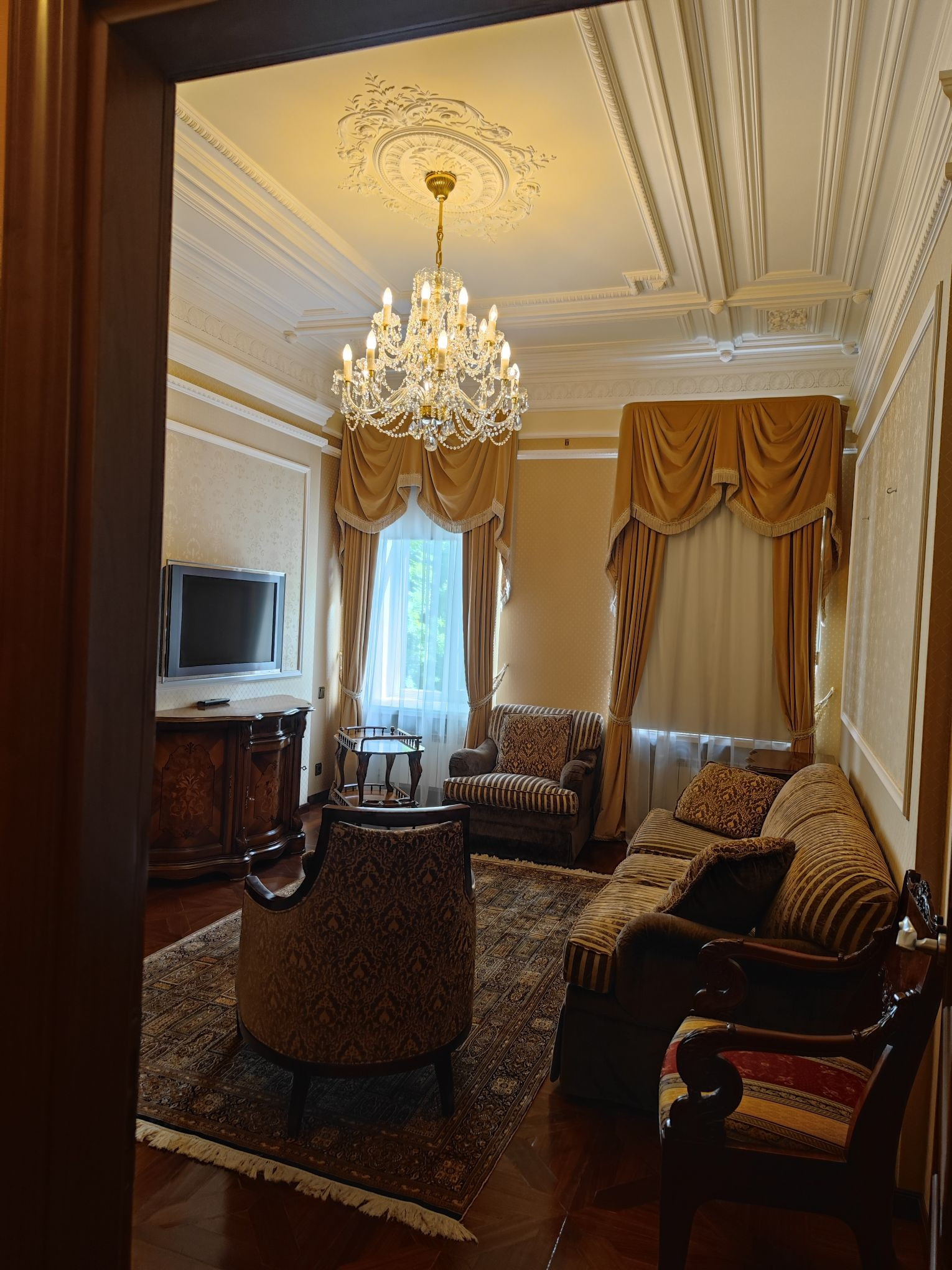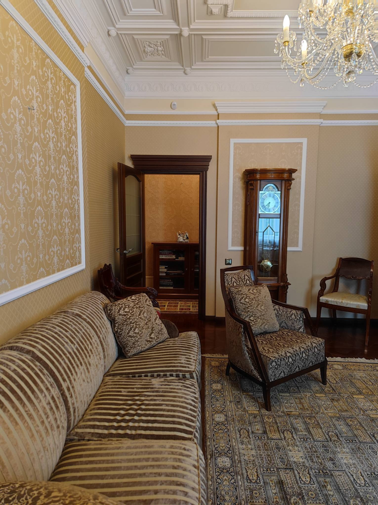 Продается великолепная,величественная квартира,в сердце Петроградского района Санкт-Петербурга.Доходный дом на углу Пушкарского переулка и улицы Ленина построен архитектором Сергеем Гингером в 1910 года.Всем известный как дом Колобовых. Доходный дом в стиле необарокко – нестандартное для того времени решение, для строительства таких домов чаще всего выбирали популярный модерн.Но этот дом выделяется среди застройки тех годов.Планировка строения необычна, его корпуса представляют собой грани большого треугольника: со стороны улицы Ленина – ровный фасад, со стороны переулка – уступчатый.Соединены оба фасада башней-ротондой.С обеих сторон от въезда во двор со стороны улицы Ленина сооружены два эркера, которые держат на своих плечах атланты.Лоджии на полукруглой апсиде украшены кариатидами.Для строительства здания был выделен большой участок, что позвонило зодчему использовать необычный планировочный прием. Если смотреть со стороны Пушкарского переулка, то корпуса здания образуют ступенчатый бульвар, называемый улица-пила.Вид со стороны Пушкарского переулка — газон в уступе(( пилы))