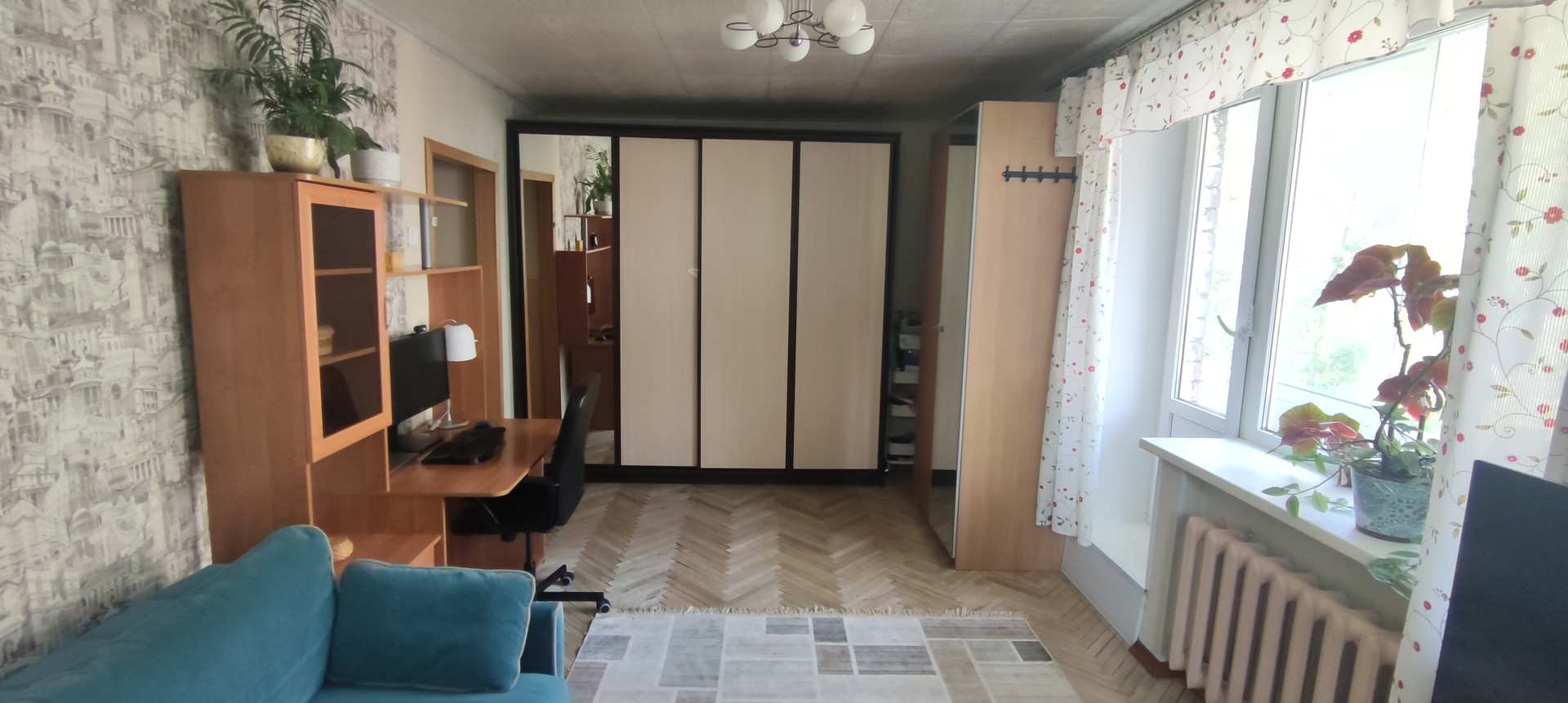 Комнаты изолированные 19.1 и 8.4м, раздельный санузел, угловая гостиная с двумя окнами, застеклённый балкон.