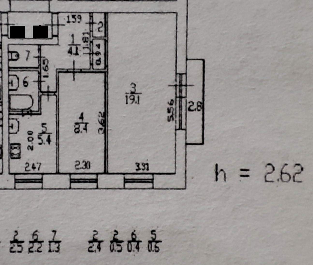 Высота потолков 2.62 м