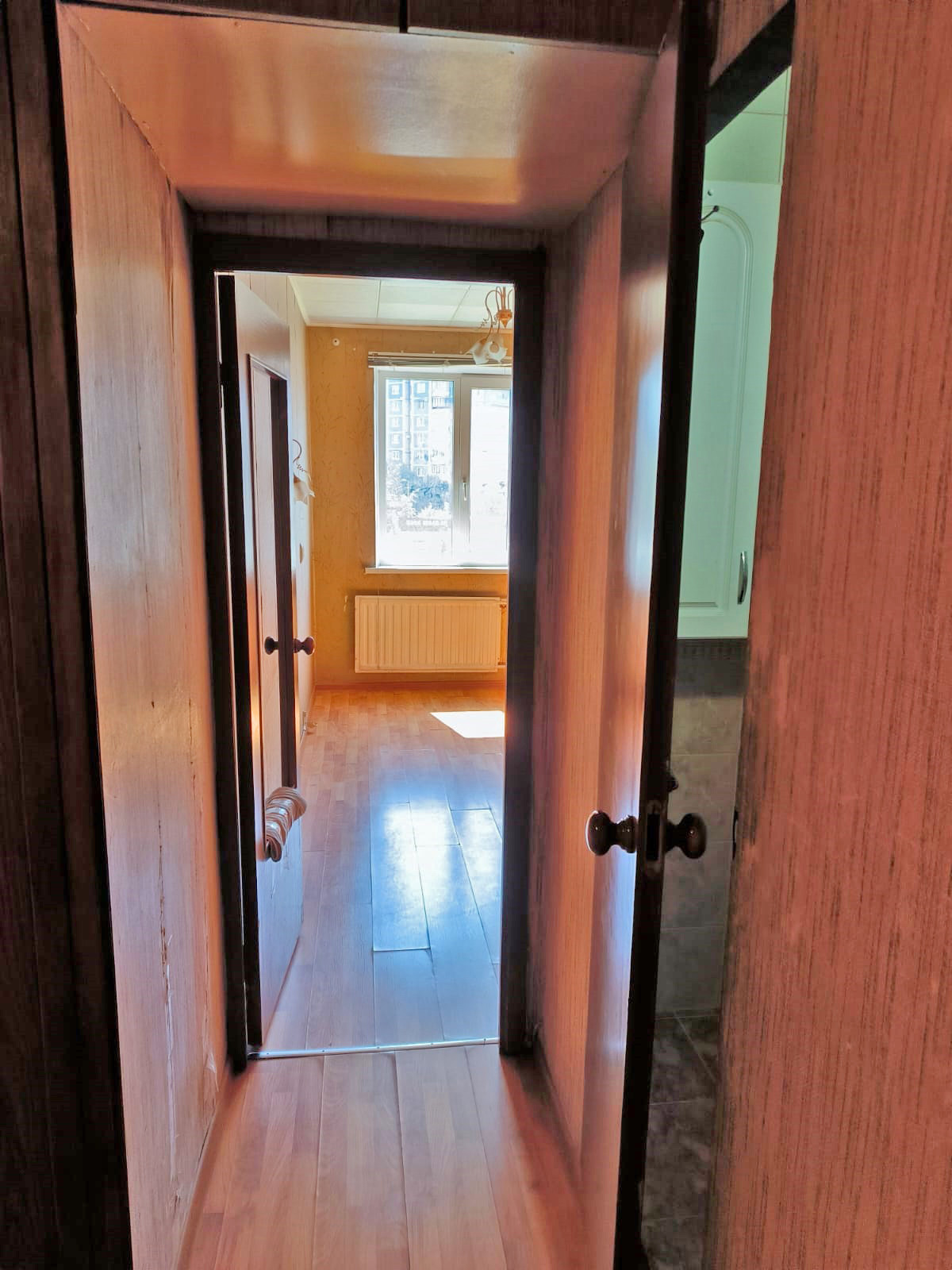Квартира полностью пригодна для проживания. Две равноценные большие комнаты 16.6 и 16.1 м2. Просторная кухня 10.2м2. Есть балкон.