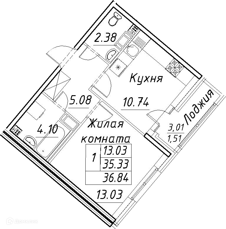 Общая площадь 36.84 м2