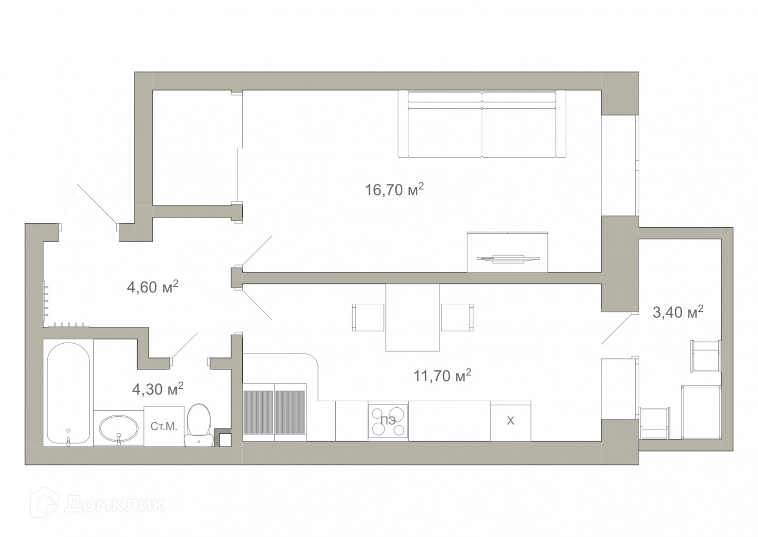 Общая площадь 37.4 м2