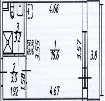 Жилая площадь 16.6 м2