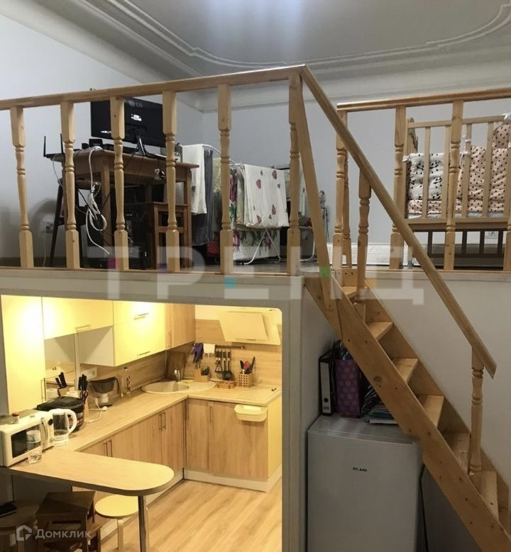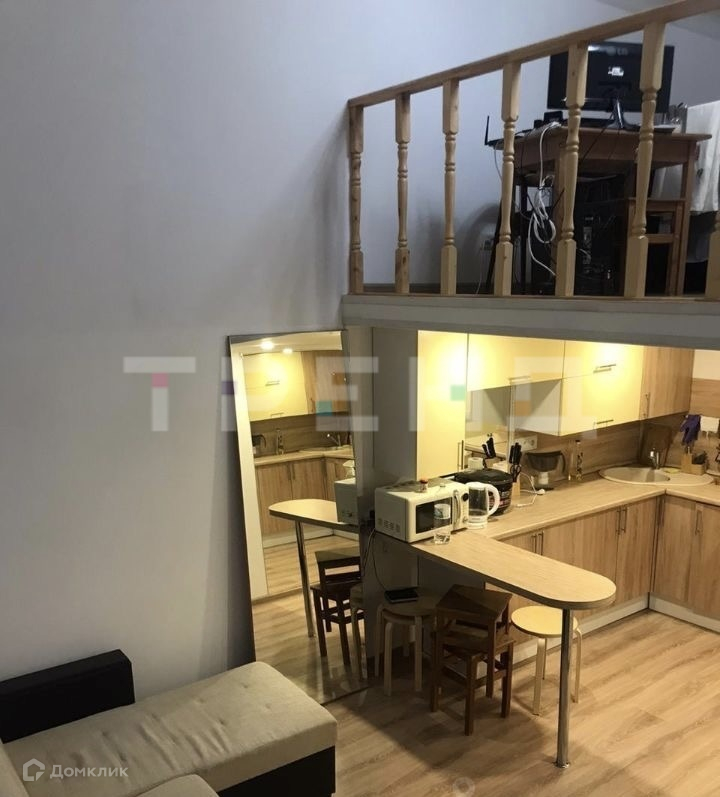 Высокие потоки 4,2 м и большие окна гарантируют свет и просторность квартиры. Площадь по полу - 24,5 кв.м., площадь второго уровня - 13,5 кв.м. В квартире сделан современный ремонт и есть вся необходимая техника: стиральная машина, холодильник, индукционная печь, вытяжка, микроволновка, эл.чайник. Большая двухспальная кровать, большая угловая кухня с барной стойкой, просторный совмещенный санузел (6 кв.м), небольшая гардеробная.