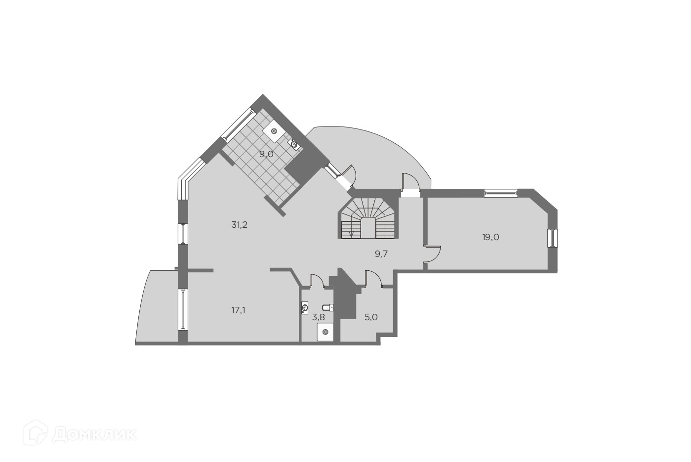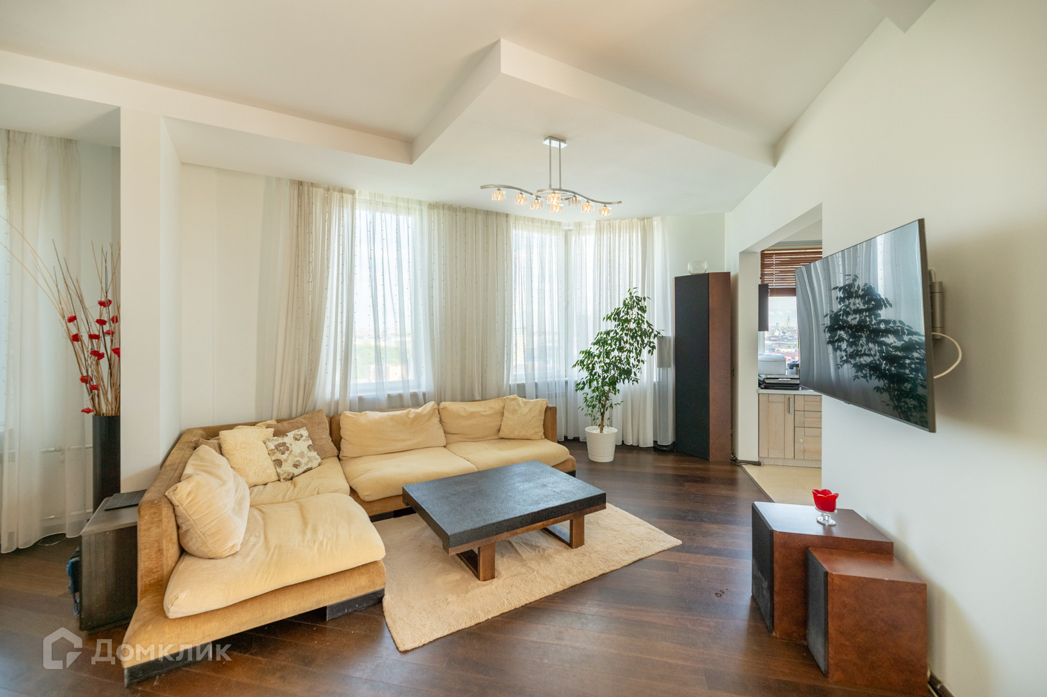 Панорамные окна на 2 стороны и потолки 3,1м максимально расширяют пространство