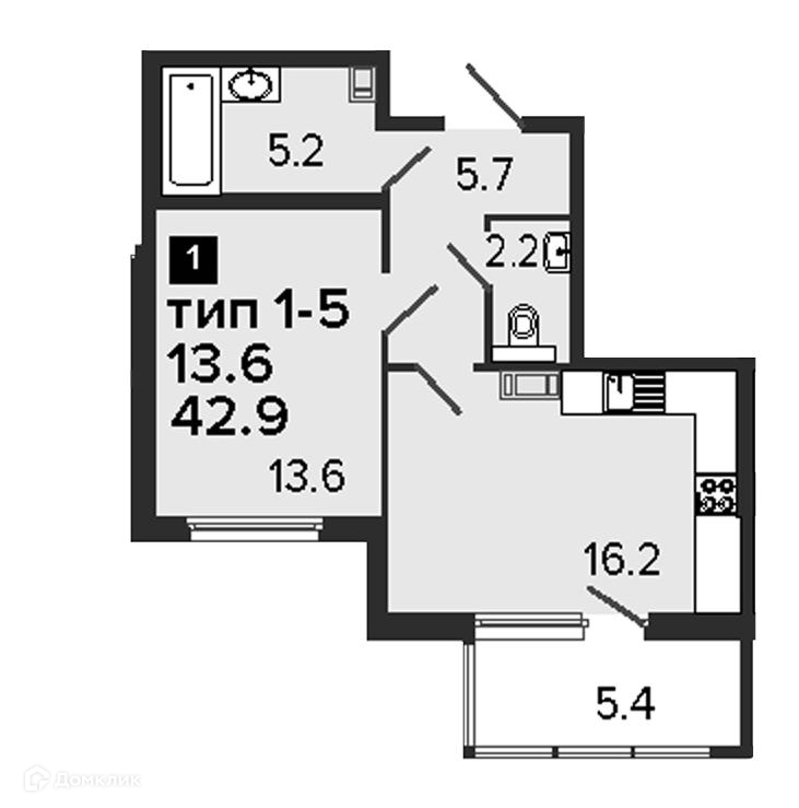Балкон, лоджия 1 балкон