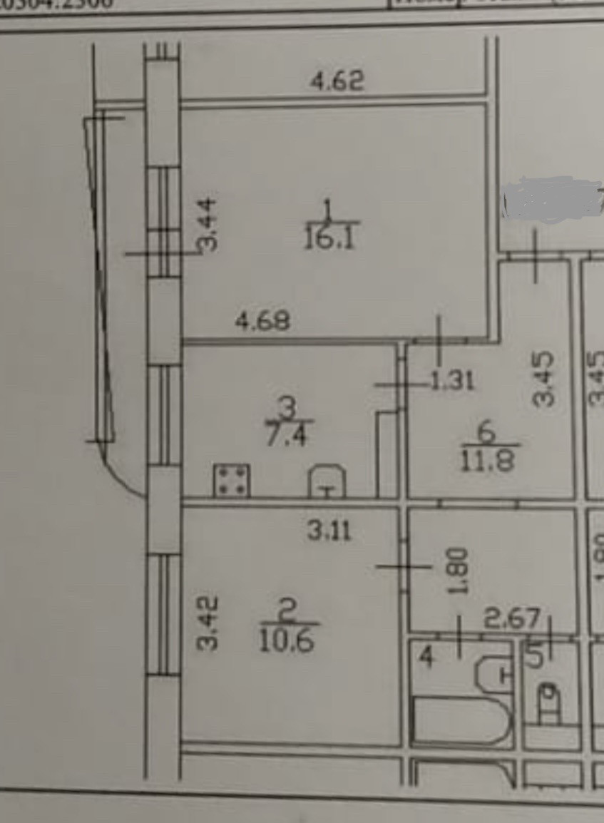 Балкон, лоджия 1 балкон