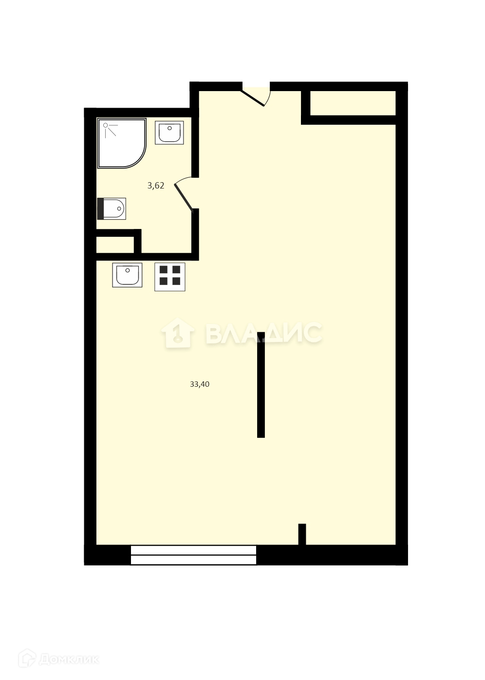 Общая площадь - 33,4 кв.м.