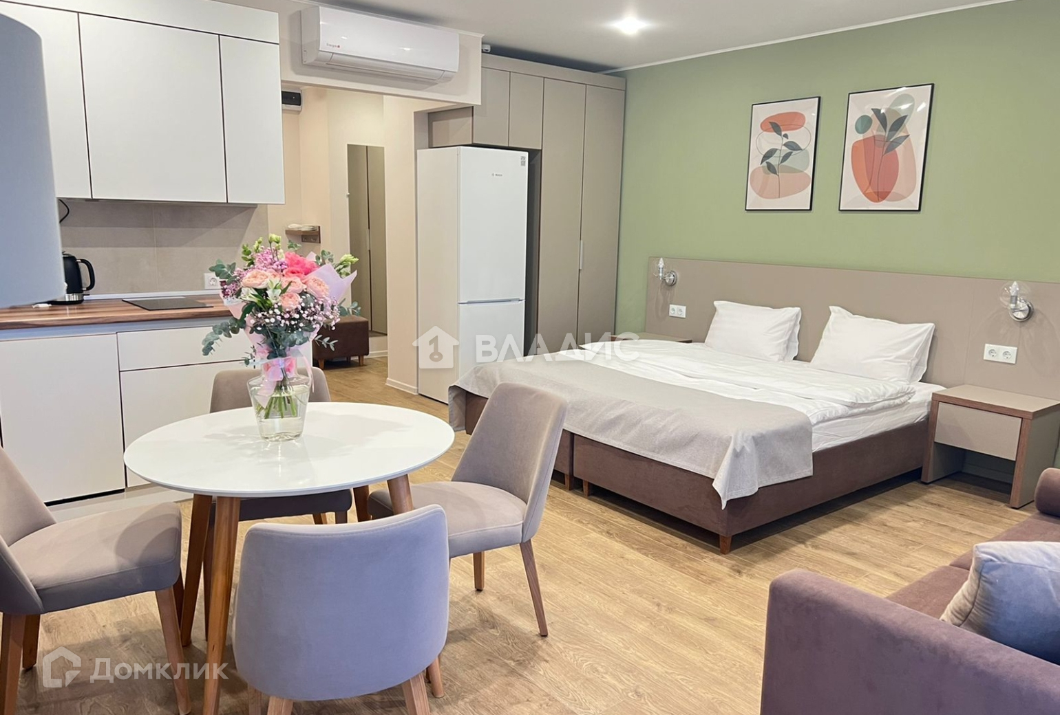 Студия полностью оснащена мебелью и техникой. Выполнен качественный ремонт.
