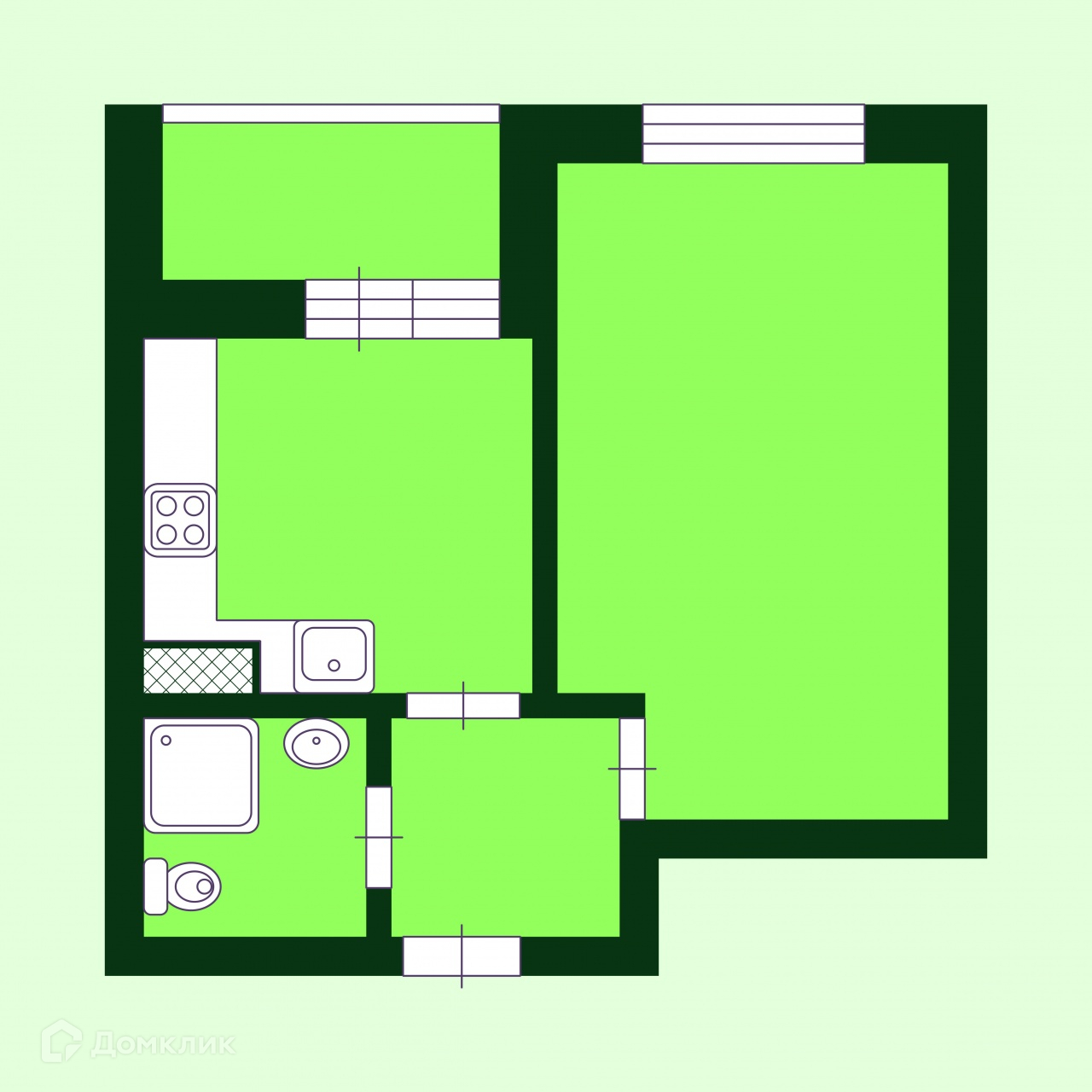 Комната с двумя окнами, есть возможность зонировать. С/у совмещенный. Кухня с балконом, с которого открывается вид на зеленый двор. просторная прихожая.